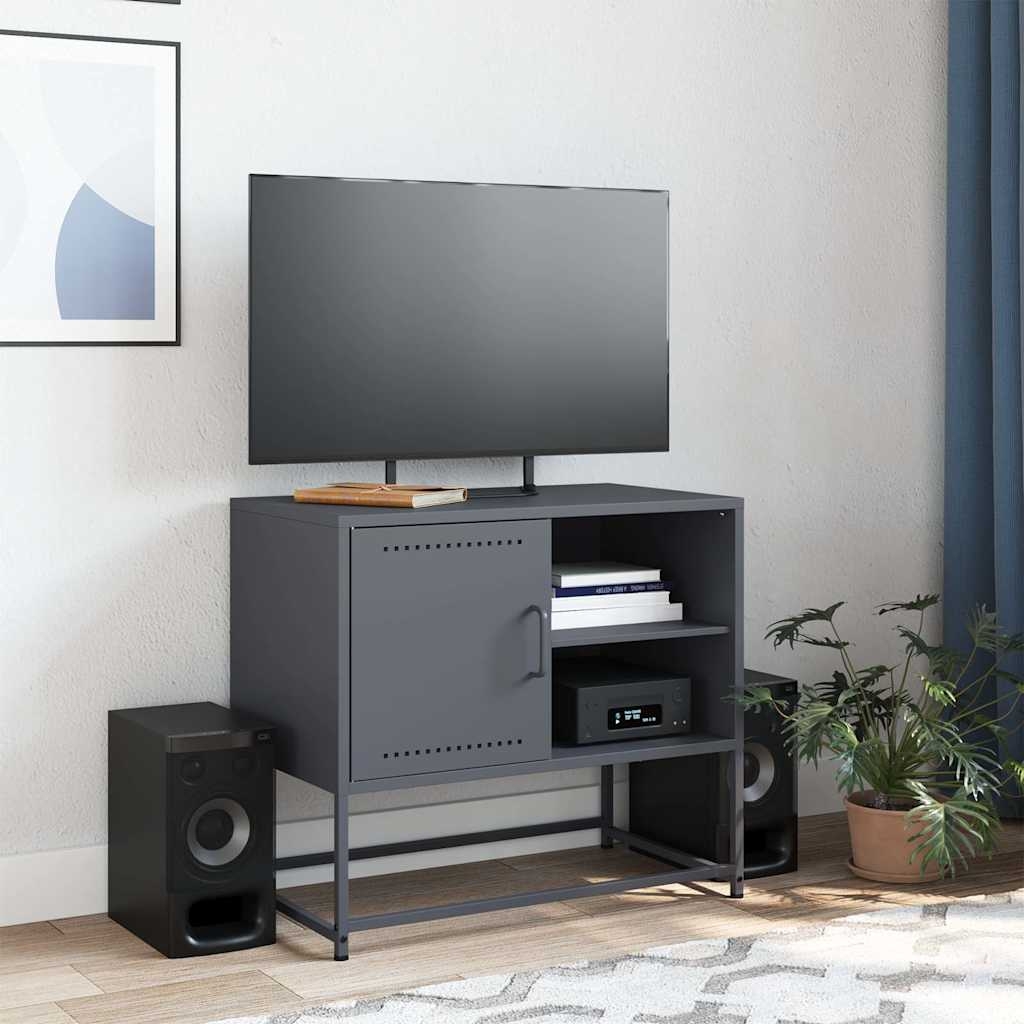 Dieser TV-Schrank im Industrie-Stil ist eine zeitlose Ergänzung zu deinem Schlafzimmer oder Wohnzimmer. Robustes und stabiles Gestell: Stahl ist stark, stabil und langlebig, was ihn zur idealen Wahl für eine Vielzahl von Anwendungen macht, von der Möbelherstellung bis hin zum Bauwesen.Reichlich Stauraum: Dieses TV-Möbel verfügt über ein Fach hinter der Tür und 2 offene Ablagen und bietet dadurch reichlich Stauraum, um deine Zeitschriften, Bücher, DVDs und Multimedia-Geräte ordentlich und griffbereit aufzubewahren.Einfache Reinigung: Der TV-Ständer lässt sich leicht mit einem feuchten Tuch reinigen und erfordert wenig Pflege. Achtung:Um ein Umkippen zu vermeiden, sollte dieses Produkt mit der mitgelieferten Wandhalterung gesichert werden.