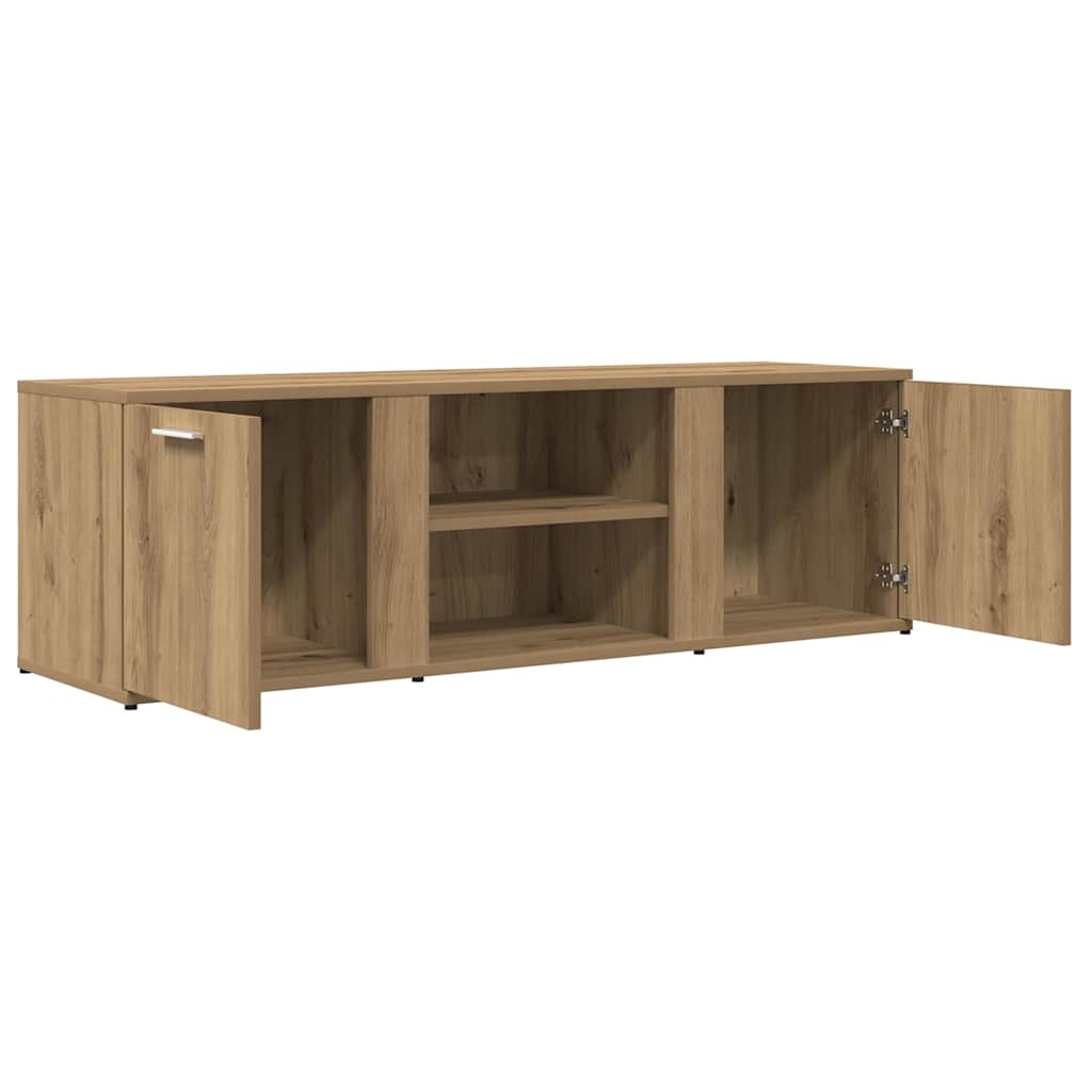 Mit seinem trendigen und dennoch praktischen Design wird dieser robuste TV-Schrank ganz bestimmt zum Hingucker in deiner Wohnung. Langlebiges Material: Holzwerkstoff ist ein Material von außergewöhnlicher Qualität mit glatter Oberfläche, das sich durch Festigkeit, Stabilität und Feuchtigkeitsbeständigkeit auszeichnet. Aus Holzwerkstoff gefertigt, ist dieser TV-Ständer robust und langlebig. Reichlich Stauraum: Der TV-Schrank mit mit 2 Fächern und Ablagen bietet reichlich Stauraum, um DVD-Player, Empfänger, Disketten und andere kleine Gegenstände gut organisiert und in Reichweite aufzubewahren. Präsentation: Die robuste Oberplatte bietet den perfekten Platz für Bilderrahmen, Topfpflanzen und andere Dekoartikel.Praktische Türen: Schütze deine wichtigsten Sachen vor Staub, indem du sie hinter den Türen im Medienschrank verstaust.