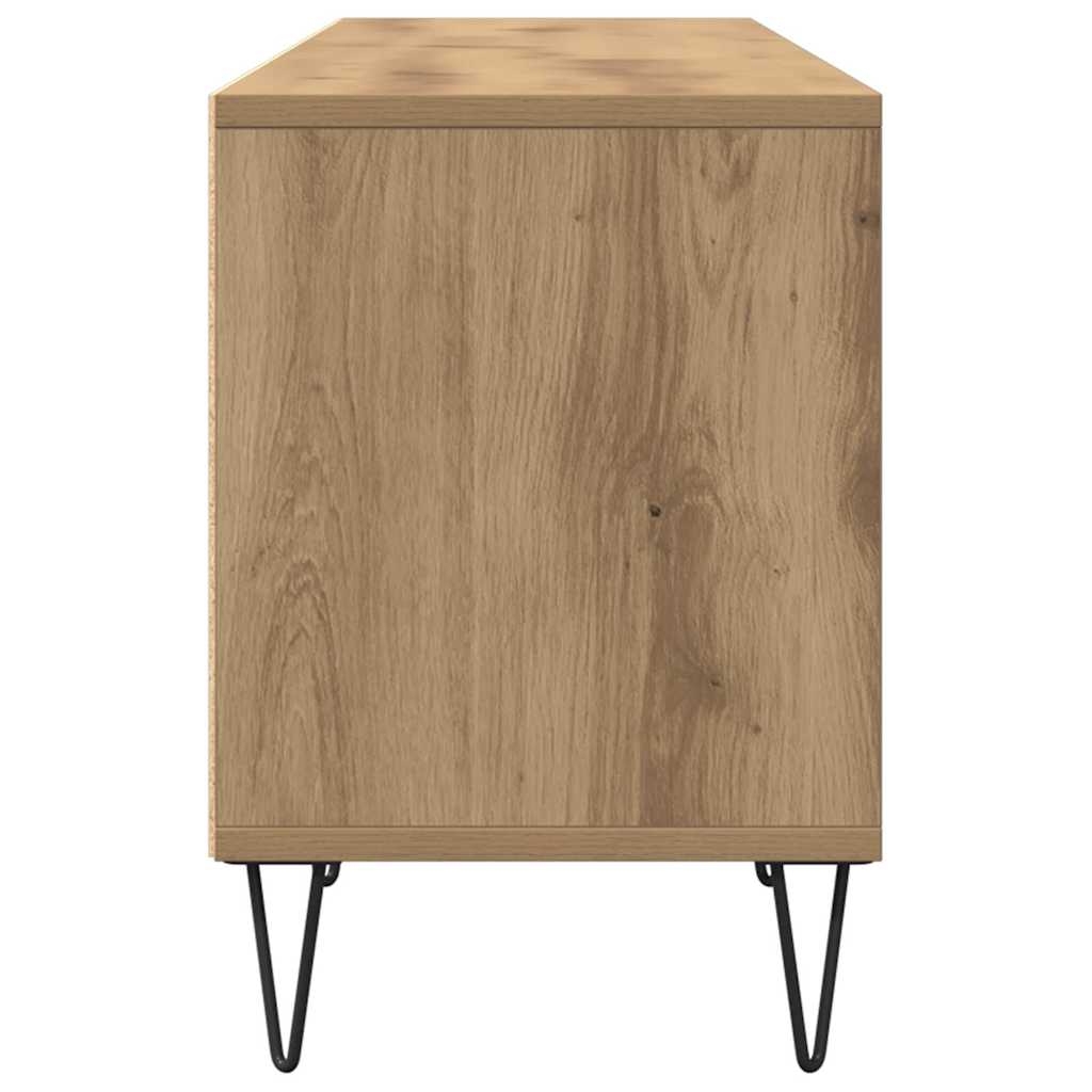 Dieser TV-Schrank bietet reichlich Stauraum und ist eine praktische sowie auffällige Ergänzung zu deinem Wohn- oder Schlafzimmer. Robustes Material: Holzwerkstoff ist ein Material von außergewöhnlicher Qualität mit glatter Oberfläche, das sich durch Festigkeit, Stabilität und Feuchtigkeitsbeständigkeit auszeichnet. Das aus Holzwerkstoff gefertigte TV-Möbel ist mit einem feuchten Tuch leicht zu reinigen.Reichlich Stauraum: Dieses TV-Möbel bietet mit 6 Fächern ausreichend Stauraum, um deine Zeitschriften, Bücher, DVDs und Elektronikgeräte gut geordnet und griffbereit aufzubewahren.Stabile Tischplatte: Die robuste Tischplatte des TV-Sideboards eignet sich perfekt zum Abstellen von Büchern, Tassen und anderen dekorativen Gegenständen.Eisenbeine: Die Beine aus Eisen bieten dem TV-Möbel Robustheit und Stabilität.
