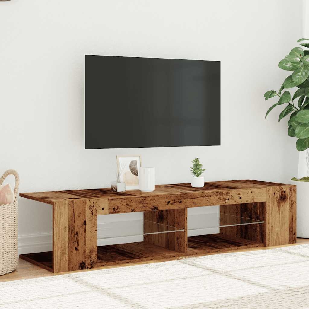 Mit seinem trendigen und dennoch praktischen Design wird dieses robuste TV-Möbel ein echter Hingucker in jedem Zimmer sein.Langlebiges Material: Der Holzwerkstoff ist von außergewöhnlicher Qualität mit glatter Oberfläche und zeichnet sich außerdem durch Festigkeit, Stabilität und Widerstandsfähigkeit gegen Feuchtigkeit aus.RGB-LED-Leuchten: Dieser TV-Ständer ist mit RGB-LED-Leuchten ausgestattet, die über verschiedene Menüs verfügen, um die Farbe der Leuchten zu wechseln und die Farbe automatisch unterschiedlich einzustellen. Die LED-Leuchten unterstreichen den modernen Look und tragen zum trendigen Gefühl bei.Reichlich Stauraum: Dieses TV-Möbel bietet praktischen Stauraum unter der Tischplatte, sodass du kleinere Gegenstände ordentlich aufbewahren kannst.Präsentation: Die Oberplatte der TV-Konsole bietet auch den perfekten Platz für Bilderrahmen, Topfpflanzen und andere Dekoartikel.Gut zu wissen:Das Produkt verfügt über einen USB-Anschluss, für den eine zertifizierte 5V-USB-Stromquelle erforderlich ist (nicht im Lieferumfang enthalten).