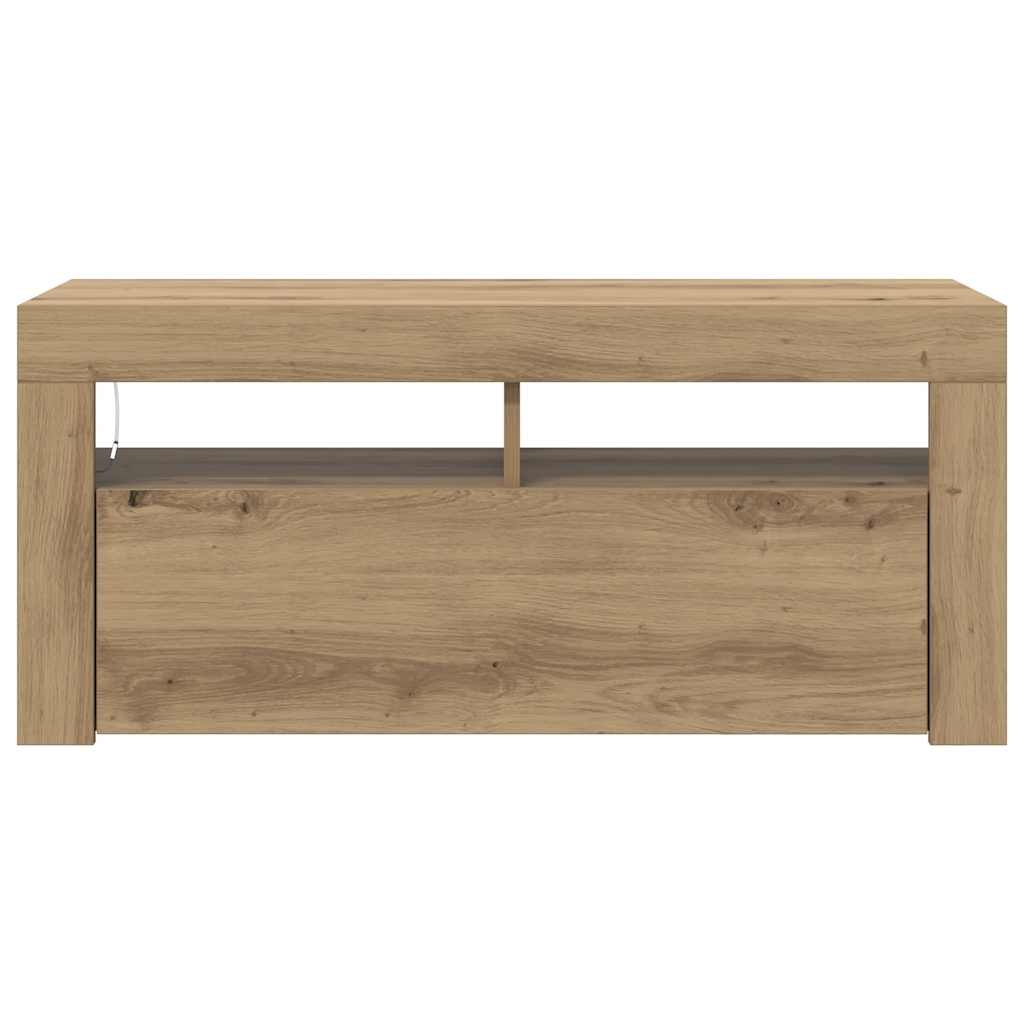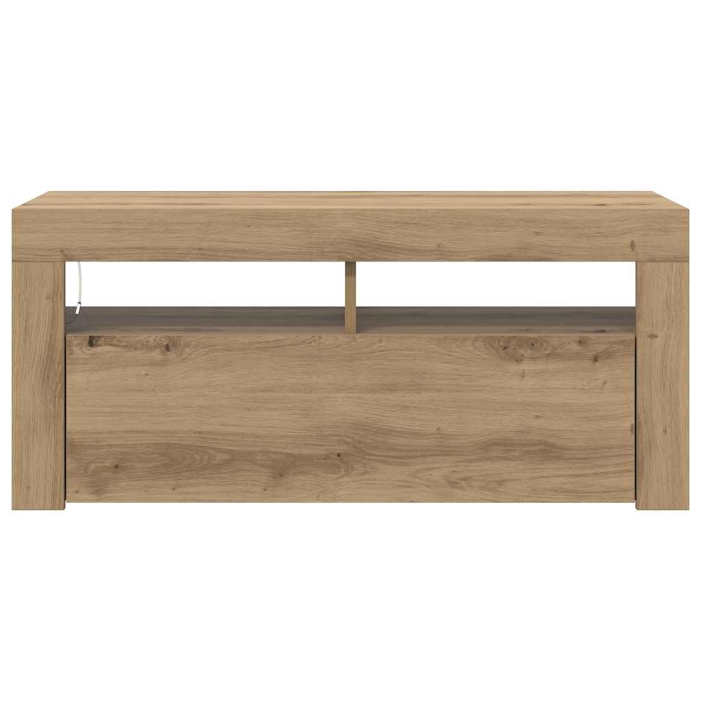 Mit seinem trendigen und dennoch praktischen Design wird dieses robuste TV-Möbel ein echter Hingucker in jedem Zimmer sein.Langlebiges Material: Der Holzwerkstoff ist von außergewöhnlicher Qualität mit glatter Oberfläche und zeichnet sich außerdem durch Festigkeit, Stabilität und Widerstandsfähigkeit gegen Feuchtigkeit aus.RGB-LED-Leuchten: Dieser TV-Ständer ist mit RGB-LED-Leuchten ausgestattet, die über verschiedene Menüs verfügen, um die Farbe der Leuchten zu wechseln und die Farbe automatisch unterschiedlich einzustellen. Die LED-Leuchten unterstreichen den modernen Look und tragen zum trendigen Gefühl bei.Reichlich Stauraum: Dieses TV-Möbel bietet praktischen Stauraum unter der Tischplatte, sodass du kleinere Gegenstände ordentlich aufbewahren kannst.Präsentation: Die Oberplatte der TV-Konsole bietet auch den perfekten Platz für Bilderrahmen, Topfpflanzen und andere Dekoartikel.Gut zu wissen:Das Produkt verfügt über einen USB-Anschluss, für den eine zertifizierte 5V-USB-Stromquelle erforderlich ist (nicht im Lieferumfang enthalten).