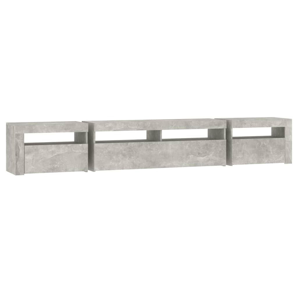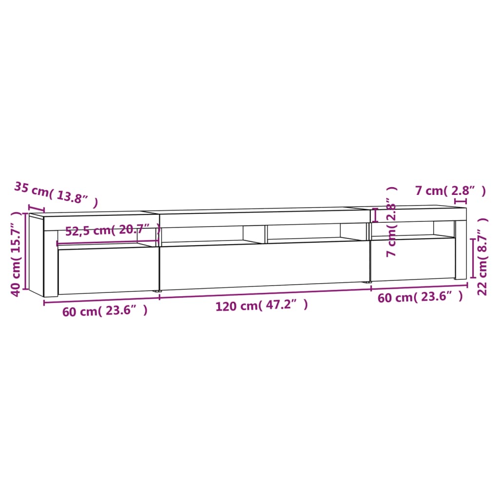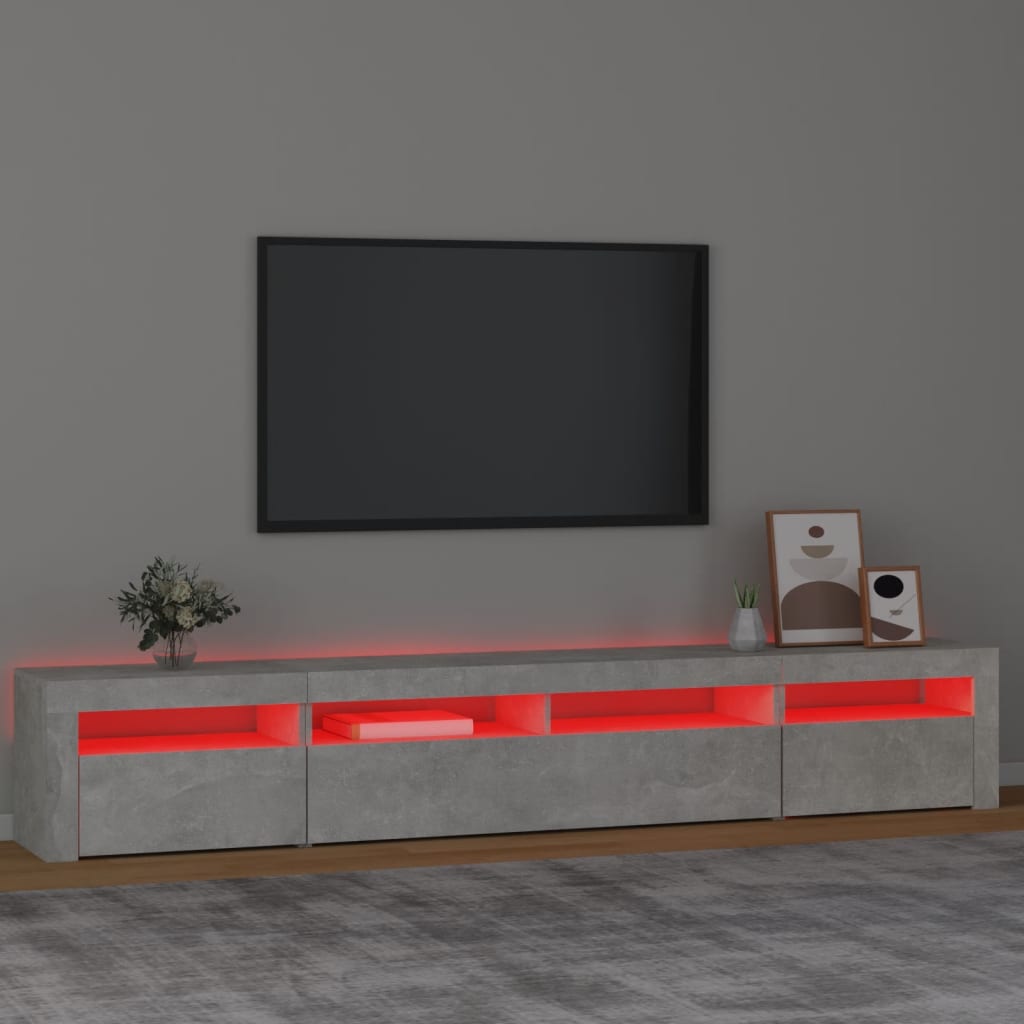 Mit seinem trendigen und zugleich praktischen Design wird dieser TV-Schrank mit LED-Leuchten definitiv zum Blickfang in Ihrem Zimmer. Starkes Material: Holzwerkstoff ist ein Material von außergewöhnlicher Qualität mit glatter Oberfläche, das sich durch Festigkeit, Stabilität und Feuchtigkeitsbeständigkeit auszeichnet.Mehrfarbige LED-Leuchten: Dieser TV-Ständer ist mit RGB-LED-Leuchten ausgestattet, die über verschiedene Menüs verfügen, um die Farbe der Leuchten zu wechseln und automatische Farbeinstellungen vorzunehmen. Die LED-Leuchten unterstreichen den modernen Look und tragen zum trendigen Gefühl bei.Reichlich Stauraum: Der TV-Schrank bietet reichlich Stauraum, um deine Zeitschriften, Bücher, Fernbedienungen und andere Kleinigkeiten gut organisiert und in Reichweite aufzubewahren.Präsentation: Die robuste Oberplatte des Medienschranks bietet den idealen Platz, um Dekoartikel, Fotorahmen oder Topfpflanzen zur Schau zu stellen. Hinweis:Das Produkt verfügt über einen USB-Anschluss, aber die zertifizierte 5-V-USB-Stromquelle ist nicht im Lieferumfang enthalten.Jedes Produkt wird mit einer Montageanleitung in der Verpackung für eine einfache Montage geliefert.