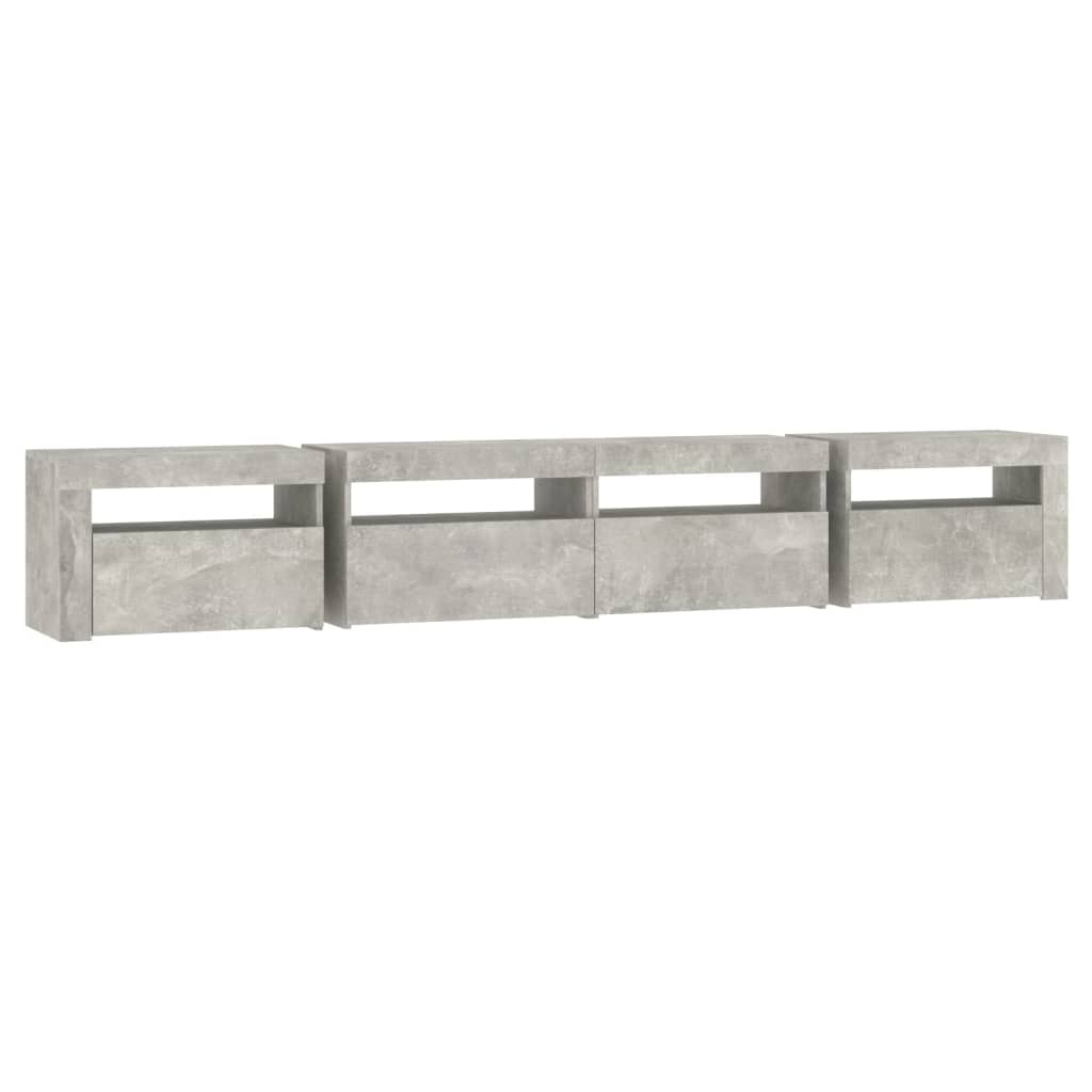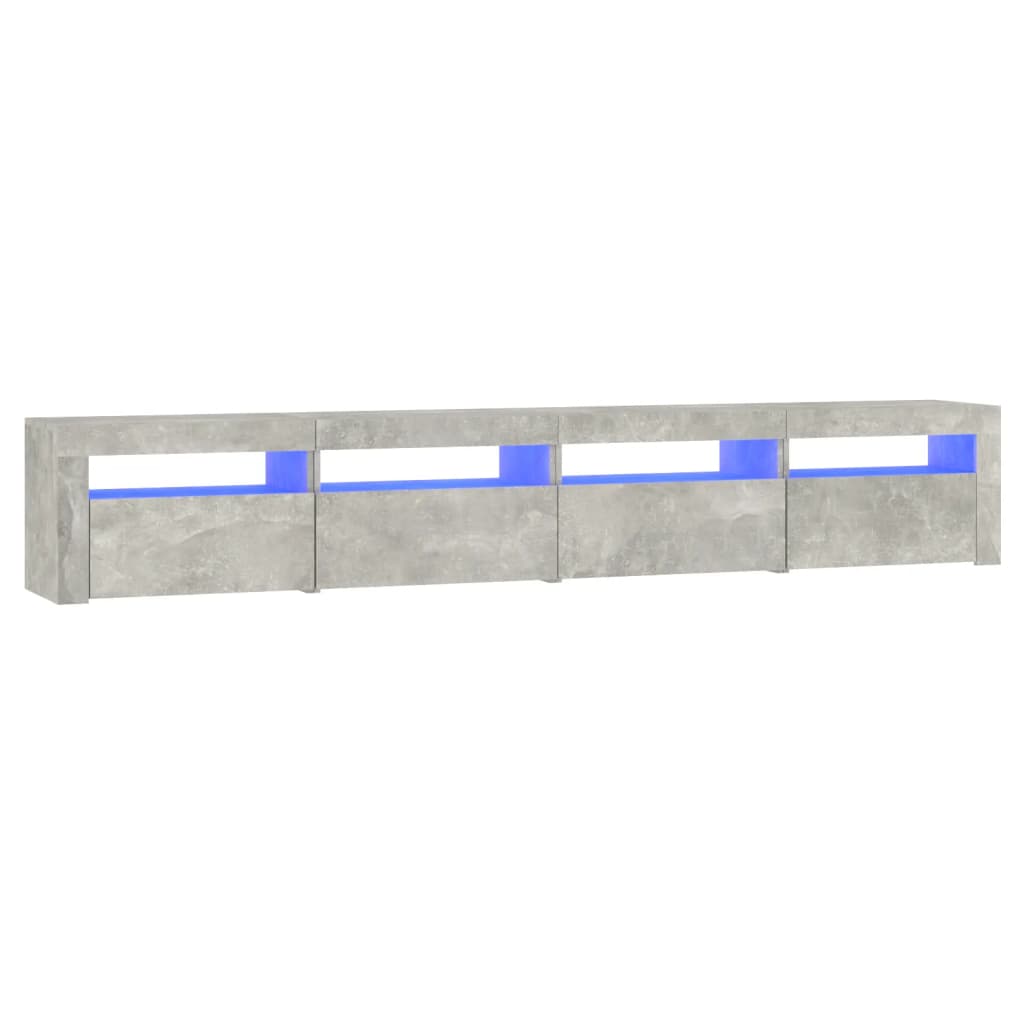 Mit seinem trendigen und zugleich praktischen Design wird dieser TV-Schrank mit LED-Leuchten definitiv zum Blickfang in Ihrem Zimmer. Starkes Material: Holzwerkstoff ist ein Material von außergewöhnlicher Qualität mit glatter Oberfläche, das sich durch Festigkeit, Stabilität und Feuchtigkeitsbeständigkeit auszeichnet. Mehrfarbige LED-Leuchten: Dieser TV-Ständer ist mit RGB-LED-Leuchten ausgestattet, die über verschiedene Menüs verfügen, um die Farbe der Leuchten zu wechseln und automatische Farbeinstellungen vorzunehmen. Die LED-Leuchten unterstreichen den modernen Look und tragen zum trendigen Gefühl bei.Reichlich Stauraum: Der TV-Schrank bietet reichlich Stauraum, um deine Zeitschriften, Bücher, Fernbedienungen und andere Kleinigkeiten gut organisiert und in Reichweite aufzubewahren.Präsentation: Die robuste Oberplatte des Medienschranks bietet den idealen Platz, um Dekoartikel, Fotorahmen oder Topfpflanzen zur Schau zu stellen. Hinweis:Das Produkt verfügt über einen USB-Anschluss, aber die zertifizierte 5-V-USB-Stromquelle ist nicht im Lieferumfang enthalten.Jedes Produkt wird mit einer Montageanleitung in der Verpackung für eine einfache Montage geliefert.