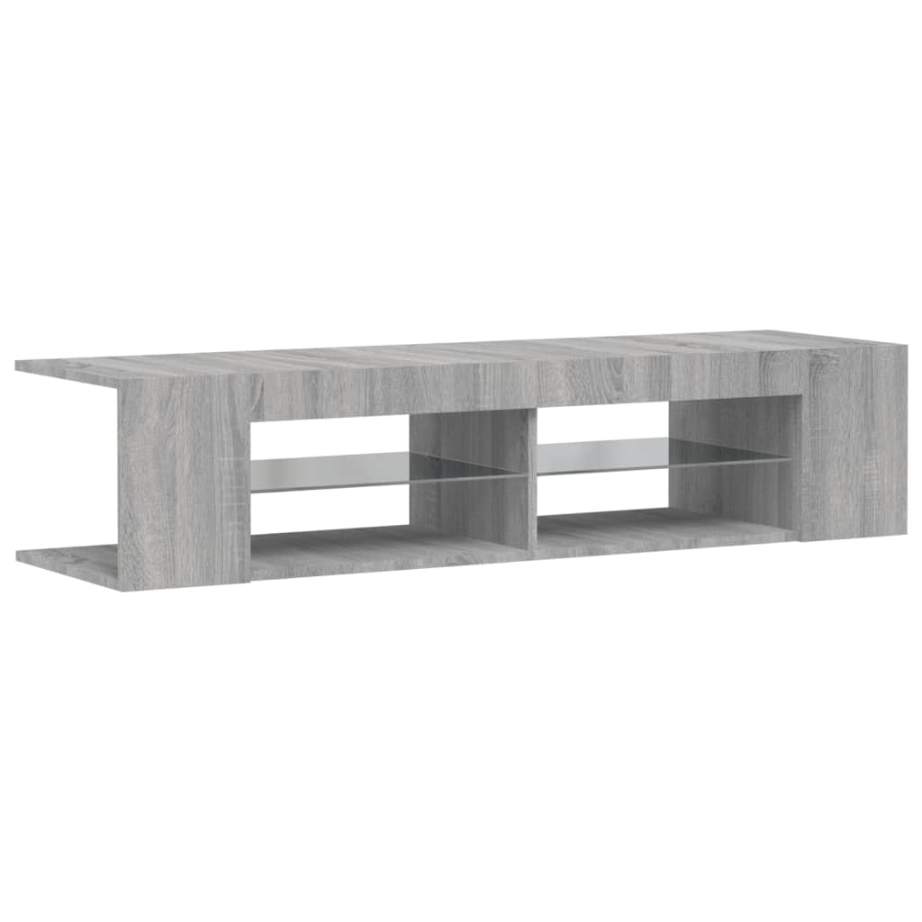 Mit seinem trendigen und zugleich praktischen Design ist dieser TV-Schrank mit LED-Leuchten ein echter Blickfang in deinem Wohnzimmer. Praktisches Material: Holzwerkstoff ist ein Material hoher Qualität mit glatter Oberfläche, das sich durch Festigkeit, Robustheit und Feuchtigkeitsbeständigkeit auszeichnet. Aus Holzwerkstoff gefertigt, lässt sich dieser HiFi-Schrank leicht reinigen.Viel Stauraum: Der Medienschrank bietet reichlich Stauraum, um verschiedene Sachen ordentlich aufzubewahren.RGB-LED-Leuchten: Dieser TV-Ständer ist mit RGB-LED-Leuchten ausgestattet, die über verschiedene Menüs verfügen, um die Farbe der Leuchten zu wechseln und die Farbe automatisch unterschiedlich einzustellen. Die LED-Leuchten unterstreichen den modernen Look und tragen zum trendigen Gefühl bei. Hinweis:Das Produkt verfügt über einen USB-Anschluss, aber die zertifizierte 5-V-USB-Stromquelle ist nicht im Lieferumfang enthalten.