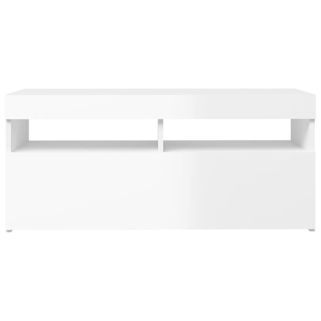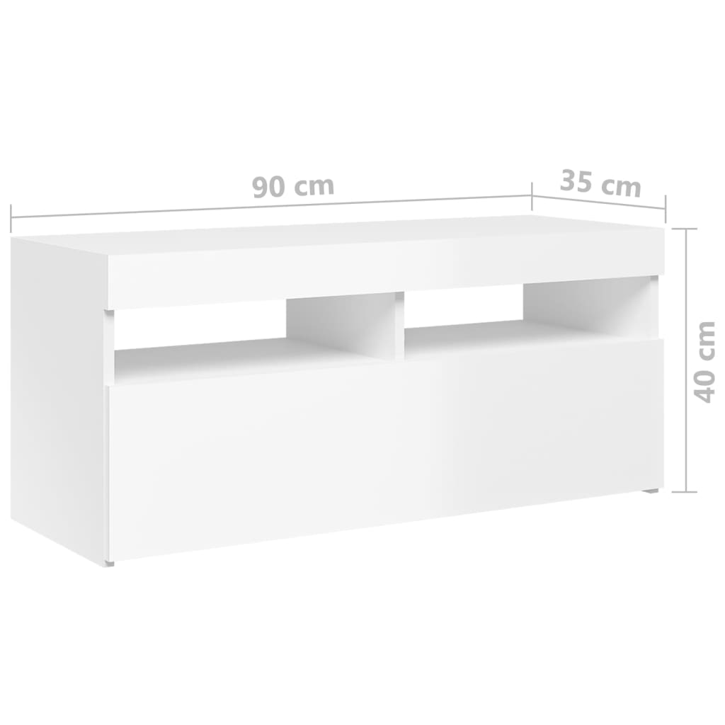 Mit seinem trendigen und zugleich praktischen Design wird dieser TV-Schrank mit LED-Leuchten definitiv zum Blickfang in Ihrem Wohnzimmer. Die robuste Konstruktion dieses TV-Tisches sorgt für Stabilität und Langlebigkeit. Der Fernsehschrank bietet ausreichend Platz, um Ihren DVD-Player, Ihre Spielekonsole, Ihr Streaming-Gerät und Ihre Medienträger ordentlich zu verstauen. Dieser TV-Ständer ist mit RGB-LED-Beleuchtung ausgestattet, die über verschiedene Menüs verfügt, um die Leuchtfarbe zu ändern und diese automatisch einzustellen. Die LED-Beleuchtung unterstreicht den modernen Look und trägt zu einem trendigen Feeling bei. Außerdem lässt sich dieses TV-Möbel leicht mit einem feuchten Tuch sauber halten. Hinweis:Das Produkt hat einen USB-Anschluss, aber die zertifizierte 5-V-USB-Stromquelle ist nicht im Lieferumfang enthalten.