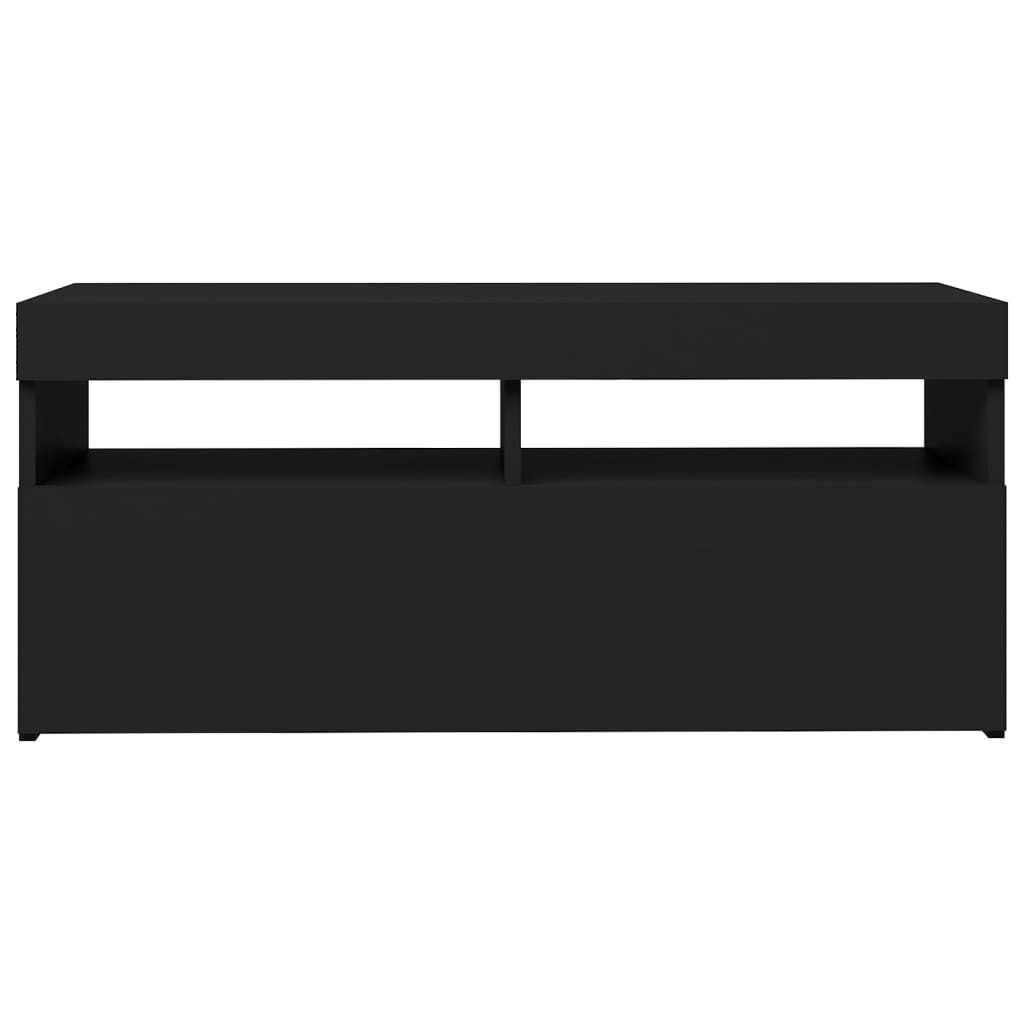 Mit seinem trendigen und zugleich praktischen Design wird dieser TV-Schrank mit LED-Leuchten definitiv zum Blickfang in Ihrem Wohnzimmer. Die robuste Konstruktion dieses TV-Tisches sorgt für Stabilität und Langlebigkeit. Der Fernsehschrank bietet ausreichend Platz, um Ihren DVD-Player, Ihre Spielekonsole, Ihr Streaming-Gerät und Ihre Medienträger ordentlich zu verstauen. Dieser TV-Ständer ist mit RGB-LED-Beleuchtung ausgestattet, die über verschiedene Menüs verfügt, um die Leuchtfarbe zu ändern und diese automatisch einzustellen. Die LED-Beleuchtung unterstreicht den modernen Look und trägt zu einem trendigen Feeling bei. Außerdem lässt sich dieses TV-Möbel leicht mit einem feuchten Tuch sauber halten. Hinweis:Das Produkt hat einen USB-Anschluss, aber die zertifizierte 5-V-USB-Stromquelle ist nicht im Lieferumfang enthalten.