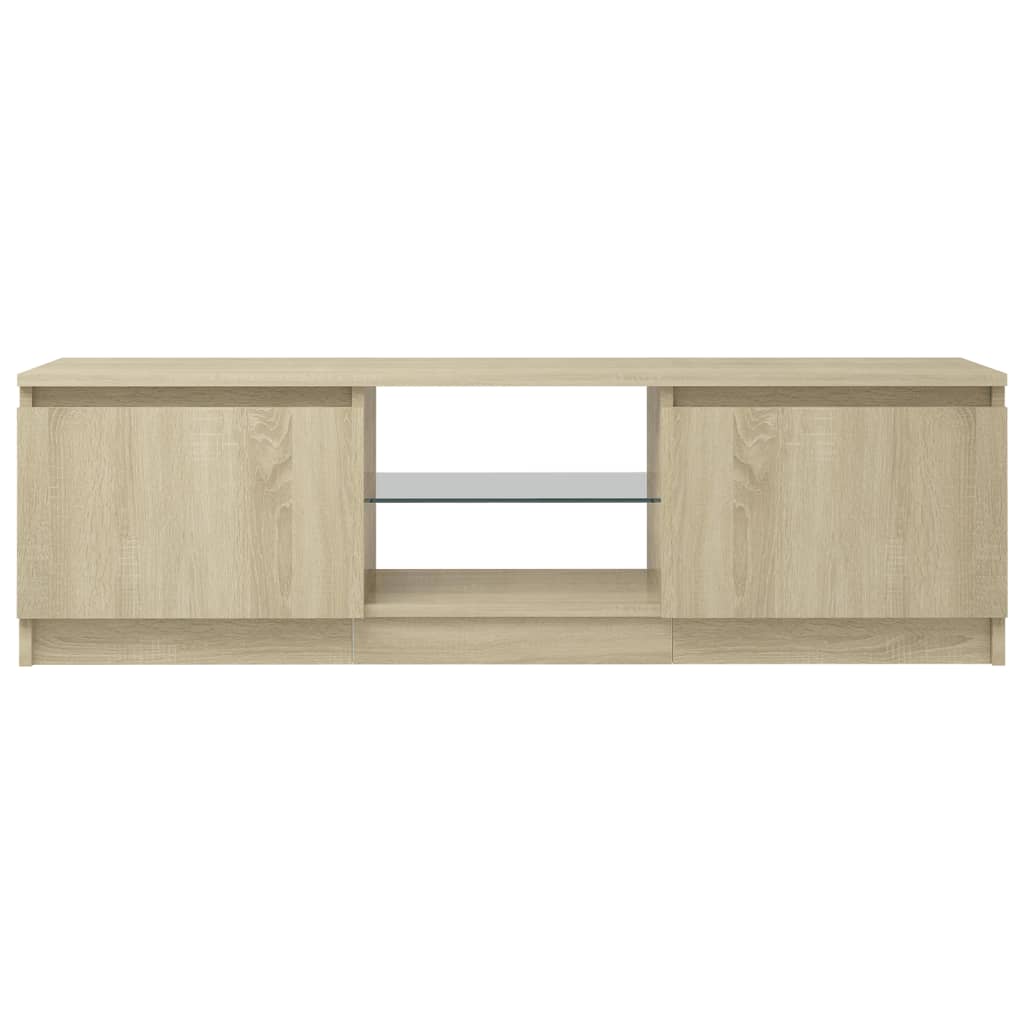Mit seinem trendigen und zugleich praktischen Design wird dieser TV-Schrank mit LED-Leuchten definitiv zum Blickfang in Ihrem Zimmer. Die robuste Konstruktion dieses TV-Tisches sorgt für Stabilität und Langlebigkeit. Der Fernsehschrank bietet ausreichend Platz, um Ihren DVD-Player, Ihre Spielekonsole, Ihr Streaming-Gerät und Ihre Medienträger ordentlich zu verstauen. Dieser TV-Ständer ist mit RGB-LED-Beleuchtung ausgestattet, die über verschiedene Menüs verfügt, um die Leuchtfarbe zu ändern und diese automatisch einzustellen. Die LED-Beleuchtung unterstreicht den modernen Look und trägt zu einem trendigen Feeling bei. Außerdem lässt sich dieses TV-Möbel leicht mit einem feuchten Tuch sauber halten. Hinweis:Das Produkt hat einen USB-Anschluss, aber die zertifizierte 5-V-USB-Stromquelle ist nicht im Lieferumfang enthalten.