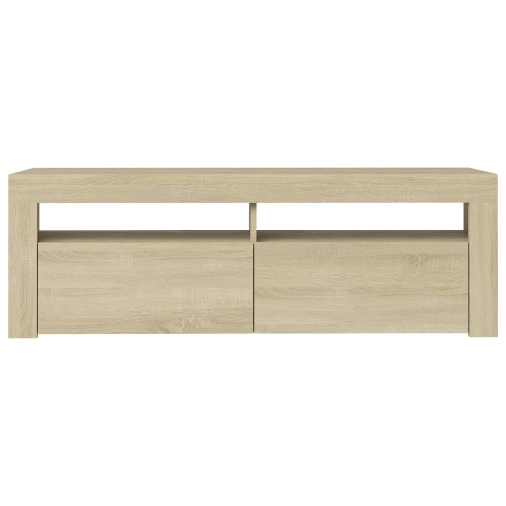 Mit seinem trendigen und zugleich praktischen Design wird dieser TV-Schrank mit LED-Leuchten definitiv zum Blickfang in Ihrem Wohnzimmer. Die robuste Konstruktion dieses TV-Tisches sorgt für Stabilität und Langlebigkeit. Der Fernsehschrank bietet ausreichend Platz, um Ihren DVD-Player, Ihre Spielekonsole, Ihr Streaming-Gerät und Ihre Medienträger ordentlich zu verstauen. Dieser TV-Ständer ist mit RGB-LED-Beleuchtung ausgestattet, die über verschiedene Menüs verfügt, um die Leuchtfarbe zu ändern und diese automatisch einzustellen. Die LED-Beleuchtung unterstreicht den modernen Look und trägt zu einem trendigen Feeling bei. Außerdem lässt sich dieses TV-Möbel leicht mit einem feuchten Tuch sauber halten. Hinweis:Das Produkt hat einen USB-Anschluss, aber die zertifizierte 5-V-USB-Stromquelle ist nicht im Lieferumfang enthalten.