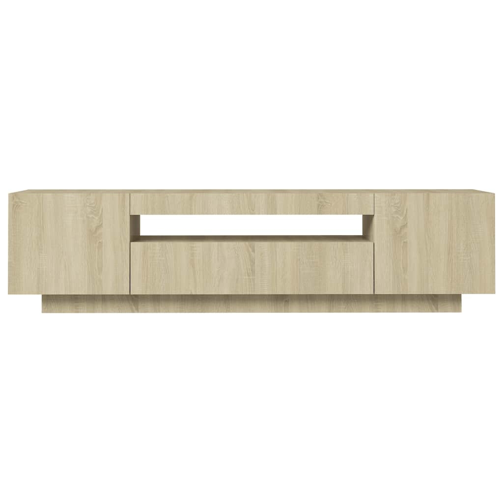 Mit seinem trendigen und zugleich praktischen Design wird dieser TV-Schrank mit LED-Leuchten definitiv zum Blickfang in Ihrem Zimmer. Die robuste Konstruktion dieses TV-Tisches sorgt für Stabilität und Langlebigkeit. Der Fernsehschrank bietet ausreichend Platz, um Ihren DVD-Player, Ihre Spielekonsole, Ihr Streaming-Gerät und Ihre Medienträger ordentlich zu verstauen. Dieser TV-Ständer ist mit RGB-LED-Beleuchtung ausgestattet, die über verschiedene Menüs verfügt, um die Leuchtfarbe zu ändern und diese automatisch einzustellen. Die LED-Beleuchtung unterstreicht den modernen Look und trägt zu einem trendigen Feeling bei. Außerdem lässt sich dieses TV-Möbel leicht mit einem feuchten Tuch sauber halten. Hinweis:Das Produkt hat einen USB-Anschluss, aber das zertifizierte USB-Netzteil ist nicht im Lieferumfang enthalten.