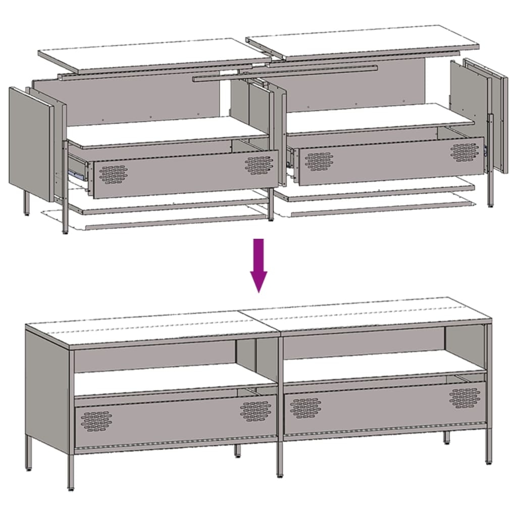 Dieser robuste TV-Schrank im Industrie-Stil ist eine zeitlose Ergänzung zu deinem Schlafzimmer oder Wohnzimmer. Stabiles Material: Das Gestell des TV-Schranks besteht aus kaltgewalztem Stahl. Dies ist eine Art kohlenstoffarmer Stahl, der im „Kaltwalzverfahren“ hergestellt und bei nahezu normalen Raumtemperaturen verarbeitet wird. Kaltgewalzter Stahl besitzt eine glattere Oberfläche, eine höhere Festigkeit und lässt sich präziser verarbeiten.Viel Stauraum: Der Schrank ist mit 2 Fächern sowie 2 Schubladen versehen und bietet dadurch viel Platz, um verschiedene Alltagssachen gut organisiert und in Reichweite aufzubewahren.Verstellbare Stellfüße: Dieses TV-Möbel ist mit vier Stellfüßen ausgestattet, um Bodenunebenheiten auszugleichen und Stabilität und Gleichgewicht zu gewährleisten.Einfache Reinigung: Der Schrank aus Metall ist mit einem feuchten Tuch leicht zu reinigen und erfordert wenig Pflege.
