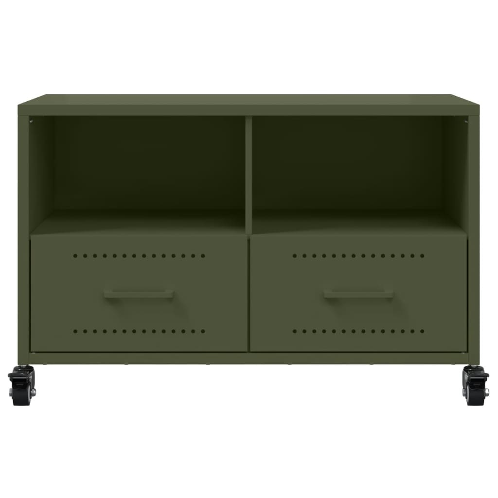 Mit seinem schlichten und dennoch praktischen Design passt dieser TV-Schrank perfekt zu deinem Wohnzimmer. Langlebiges Material: Stahl ist ein außergewöhnlich hartes und starkes Material. Er bietet Robustheit und Stabilität. Kaltgewalztes Stahlblech weist eine glatte Oberfläche auf und lässt sich präzise verarbeiten.Präsentation: Die stabile Oberplatte des Medienschrank bietet den idealen Platz, um Dekoartikel wie Bilderrahmen und Pflanzen zur Schau zu stellen.Viel Stauraum: Der TV-Ständer verfügt über 2 Schubladen und 2 Ablagen und bietet den idealen Platz, um all deine Zeitschriften, DVDs und andere Gegenstände aufzubewahren.Pflegeleicht: Dank seiner schmutzabweisenden Oberfläche lässt sich der TV-Tisch leicht abwischen und reinigen, um stets brandneu auszusehen.Einfaches Umstellen: Dieser Schrank verfügt über 4 Rollen und lässt sich daher flexibel und mühelos umher verschieben.