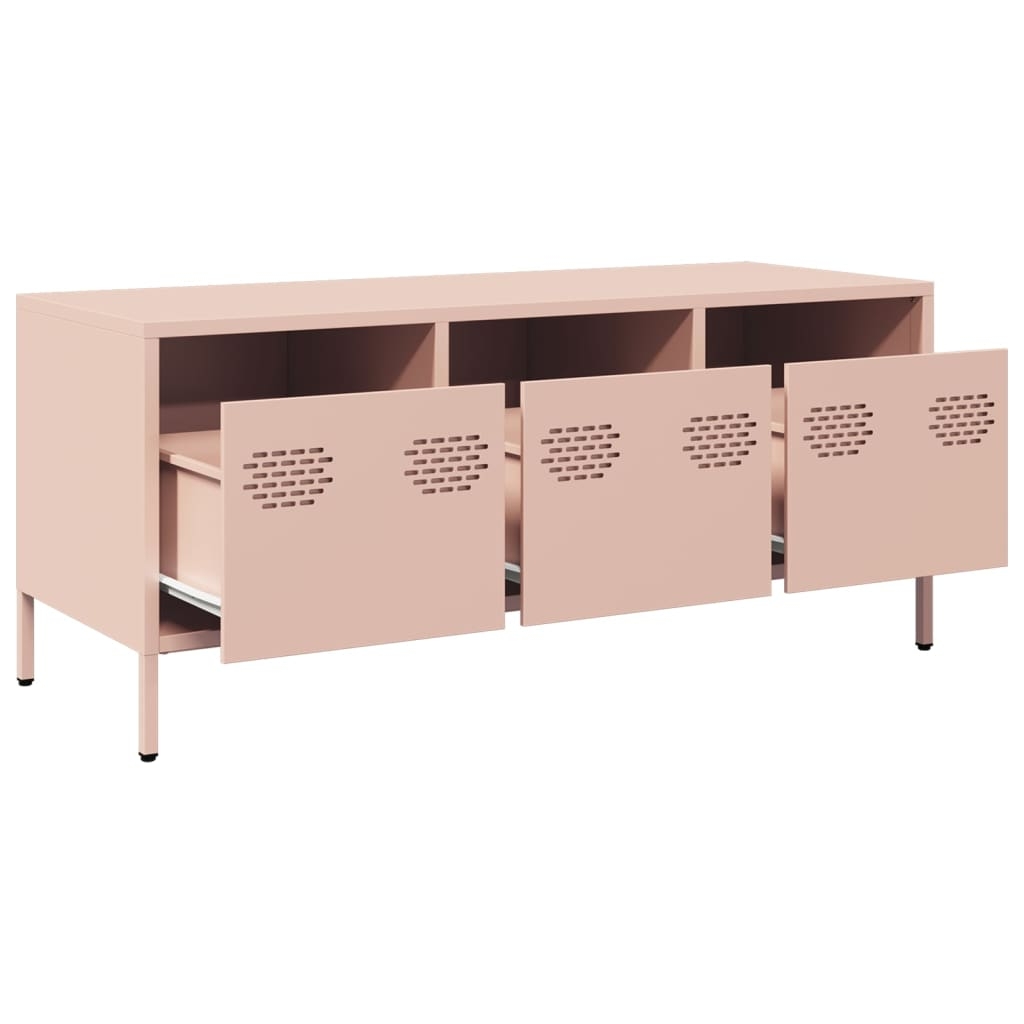 Dieser robuste TV-Schrank im Industrie-Stil ist eine zeitlose Ergänzung zu deinem Schlafzimmer oder Wohnzimmer. Stabiles Material: Das Gestell des TV-Schranks besteht aus kaltgewalztem Stahl. Dies ist eine Art kohlenstoffarmer Stahl, der im „Kaltwalzverfahren“ hergestellt und bei nahezu normalen Raumtemperaturen verarbeitet wird. Kaltgewalzter Stahl besitzt eine glattere Oberfläche, eine höhere Festigkeit und lässt sich präziser verarbeiten.Reichlich Stauraum: Mit 3 Schubladen versehen, bietet der Schrank reichlich Platz, um verschiedene Alltagssachen übersichtlich und griffbereit zu verstauen.Verstellbare Stellfüße: Dieses TV-Möbel ist mit vier Stellfüßen ausgestattet, um Bodenunebenheiten auszugleichen und Stabilität und Gleichgewicht zu gewährleisten.Einfache Reinigung: Der Schrank aus Metall ist mit einem feuchten Tuch leicht zu reinigen und erfordert wenig Pflege.
