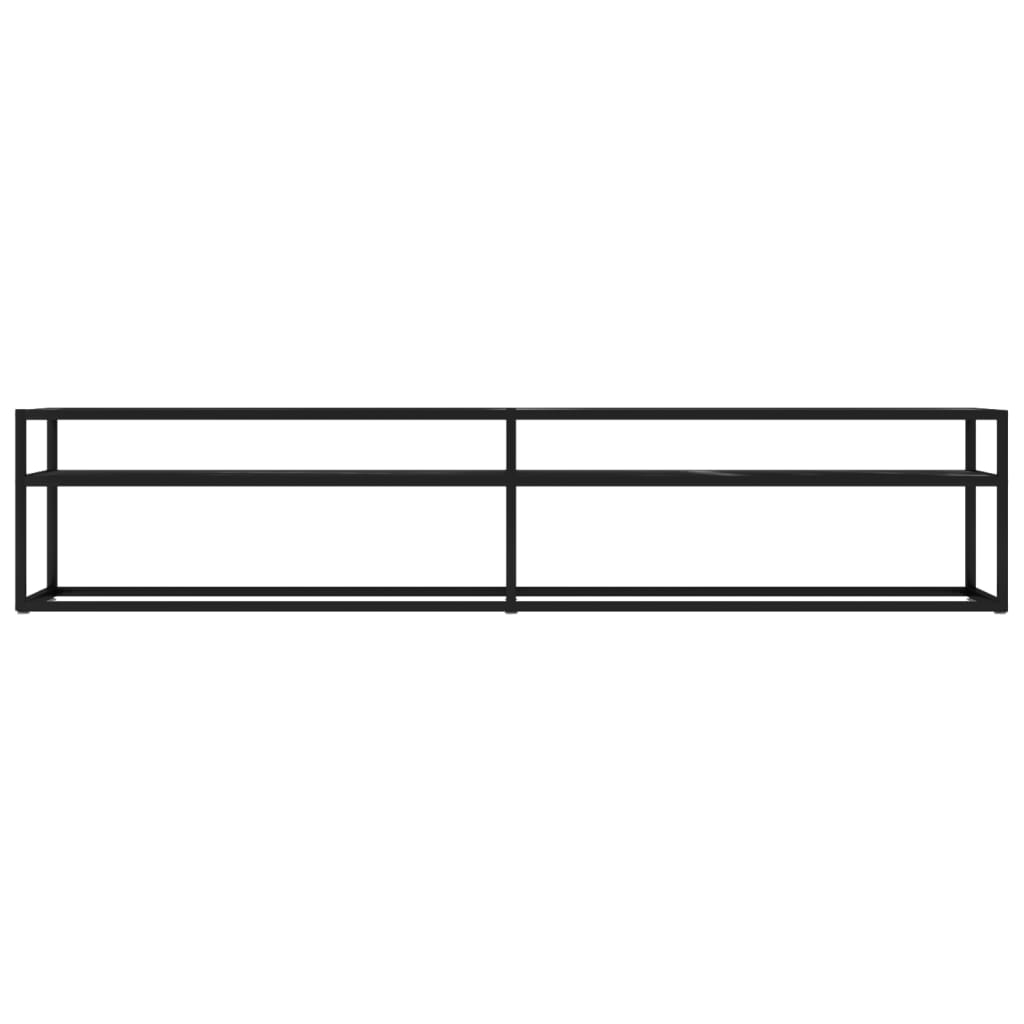 Dieses TV-Möbel wird mit seinem schlanken und modernen Design eine praktische Ergänzung zu deinem Wohnzimmer sein. Der TV-Tisch ist aus gehärtetem Glas gefertigt, wodurch er sehr robust und stabil ist. Außerdem lässt sich dieses moderne Möbelstück leicht mit einem feuchten Tuch reinigen. Der Rahmen aus pulverbeschichtetem Stahl trägt zu seiner Robustheit und einzigartiger Optik bei. Die Ablage unter der Tischplatte bietet reichlich Platz, um DVDs, Bücher und andere wichtige Kleinigkeiten geordnet und griffbereit aufzubewahren.