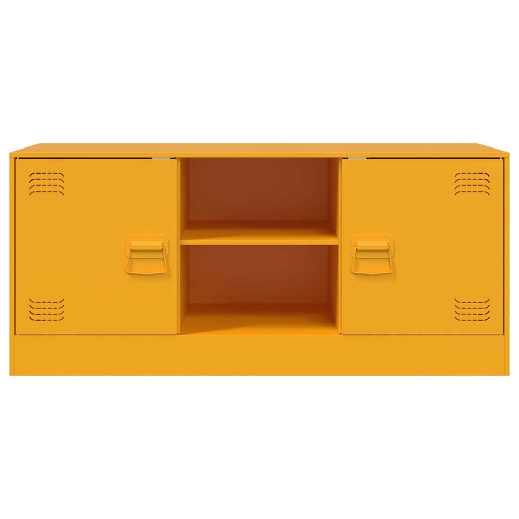 Dieser robuste TV-Schrank wird mit seinem trendigen und dennoch praktischen Design sicherlich der Mittelpunkt Ihres Wohnzimmers werden. Stabiles Material: Das Gestell des TV-Schranks besteht aus kaltgewalztem Stahl. Kaltgewalzter Stahl ist eine Art kohlenstoffarmer Stahl, der im „Kaltwalzverfahren“ hergestellt und bei nahezu normalen Raumtemperaturen verarbeitet wird. Kaltgewalzter Stahl besitzt eine glattere Oberfläche, eine höhere Festigkeit und lässt sich präziser verarbeiten.Reichlich Stauraum: Dieser Schrank bietet praktischen Stauraum, um deine Zeitschriften, Bücher, Fernbedienungen und andere kleine Gegenstände gut geordnet und in Reichweite aufzubewahren.Pflegeleicht: Der Tisch lässt sich mit einem feuchten Tuch leicht reinigen und erfordert wenig Pflege.Praktischer Griff: Der TV-Schrank ist mit 2 Griffen ausgestattet, die das Öffnen und Schließen des Schranks erleichtern und gleichzeitig zu seiner ansprechenden Optik beitragen.