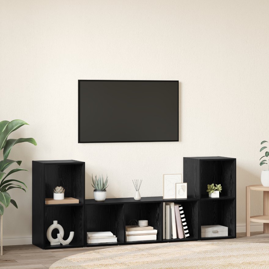 Dieser moderne TV-Schrank bringt Funktionalität und ein schickes Design zusammen, um dein Wohnzimmer aufzuwerten. Aus Holzwerkstoff gefertigt, hat er eine rechteckige Form und klare Linien, die ihm einen stylischen Look verleihen, perfekt für moderne Einrichtungen. Egal, ob du deine Lieblingsserien binge-watchst oder einen Filmabend machst, dieses Stück ist der ideale Blickfang und bietet viel Stauraum und eine solide Bauweise. Holzwerkstoff Konstruktion Dieser TV-Schrank ist aus Holzwerkstoff gefertigt, also klar, dass er strapazierfähig und langlebig ist. Er ist so konzipiert, dass er den täglichen Gebrauch problemlos übersteht, was ihn zu einer tollen Wahl für dein Medienzeug macht. Die Oberfläche sieht super aus und fühlt sich glatt an. Geräumiger Stauraum Der Schrank ist durchdacht gestaltet, mit mehreren Fächern für all deine Medienaccessoires, Spielkonsolen oder Deko. Er hat reichlich Stauraum, hält dein Wohnzimmer ordentlich und macht es leicht, das zu finden, was du brauchst. Modernes Design Mit seinem schlichten und funktionalen Look passt der Schrank perfekt zu allen Einrichtungsstilen. Seine schlanke Form und die braune Farbe harmonieren toll mit anderen Möbeln und machen ihn zum stilvollen Mittelpunkt. Für drinnen gedacht Der Schrank ist für Innenräume konzipiert und fügt sich super in jedes Wohnzimmer ein. Er ist ein verlässliches Möbelstück, wo man sich entspannen, unterhalten oder zusammenkommen kann, und passt perfekt zur Atmosphäre deines Zuhauses. Pflegehinweise Damit der Schrank gut aussieht, wisch einfach mit einem trockenen, weichen Tuch drüber. Vermeide aggressive Chemikalien oder zu viel Feuchtigkeit, um die Oberfläche zu schützen. Sich um ihn zu kümmern bewahrt sein schickes Aussehen und sorgt dafür, dass er in jedem Umfeld nützlich bleibt.