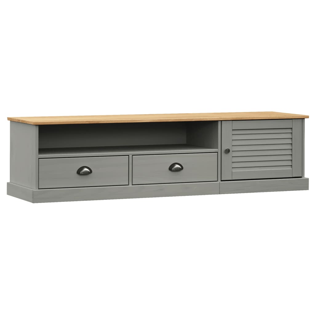 Dieser TV-Schrank aus Holz mit viel Stauraum ist eine praktische und auffällige Ergänzung für dein Wohn- oder Schlafzimmer. Kiefern-Massivholz: Massives Kiefernholz ist ein wunderschönes Naturmaterial. Kiefernholz hat eine gerade Maserung und die Aststellen verleihen dem Material sein typisches, rustikales Aussehen. Aus Kiefer-Massivholz gefertigt, ist das TV-Möbel langlebig und robust. Reichlich Stauraum: Der TV-Schrank verfügt über 2 Schubladen, 1 offenes Fach und 1 Fach mit Tür und bietet somit ausreichend Stauraum, um deine Zeitschriften, Bücher, DVDs und Multimediageräte gut geordnet und griffbereit zu halten.Pflegeleicht: Das TV-Lowboard lässt sich leicht mit einem feuchten Tuch reinigen und braucht wenig Pflege.Griffe und Knopf aus Metall: Der Fernsehschrank ist mit Griffen und Knauf aus Metall ausgestattet, die das Öffnen und Schließen der Schubladen und Türen erleichtern und gleichzeitig für zusätzliche Schönheit sorgen.