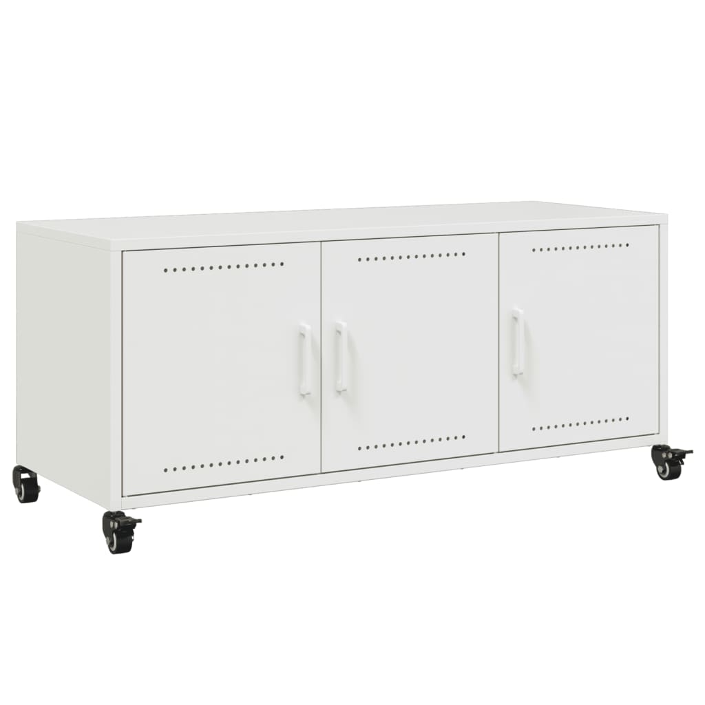 Mit seinem schlichten und dennoch praktischen Design passt dieser TV-Schrank perfekt zu deinem Wohnzimmer. Langlebiges Material: Stahl ist ein außergewöhnlich hartes und starkes Material. Er bietet Robustheit und Stabilität. Kaltgewalztes Stahlblech weist eine glatte Oberfläche auf und lässt sich präzise verarbeiten.Präsentation: Die stabile Oberplatte des Medienschrank bietet den idealen Platz, um Dekoartikel wie Bilderrahmen und Pflanzen zur Schau zu stellen.Viel Stauraum: Der TV-Ständer verfügt über 3 Türen und bietet den idealen Platz, um all deine Zeitschriften, DVDs und andere Gegenstände aufzubewahren.Pflegeleicht: Dank seiner schmutzabweisenden Oberfläche lässt sich der TV-Schrank leicht abwischen und reinigen, um stets brandneu auszusehen.Einfaches Umstellen: Dieser Schrank verfügt über 4 Rollen und lässt sich daher flexibel und mühelos umher verschieben.