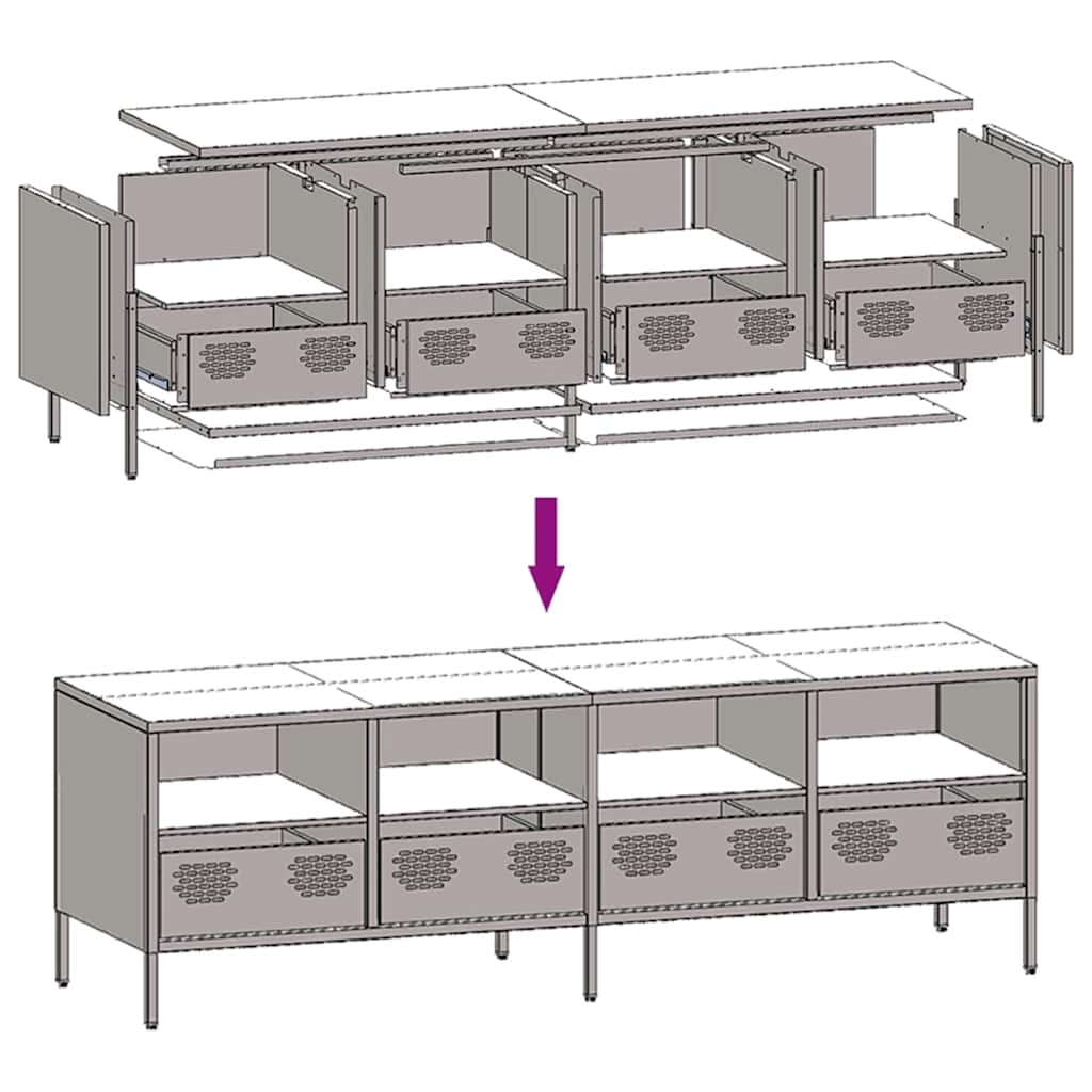 Dieser robuste TV-Schrank im Industrie-Stil ist eine zeitlose Ergänzung zu deinem Schlafzimmer oder Wohnzimmer. Stabiles Material: Das Gestell des TV-Schranks besteht aus kaltgewalztem Stahl. Dies ist eine Art kohlenstoffarmer Stahl, der im „Kaltwalzverfahren“ hergestellt und bei nahezu normalen Raumtemperaturen verarbeitet wird. Kaltgewalzter Stahl besitzt eine glattere Oberfläche, eine höhere Festigkeit und lässt sich präziser verarbeiten.Reichlich Stauraum: Mit 4 Fächern und 4 Schubladen versehen, bietet der Schrank reichlich Platz, um verschiedene Alltagssachen ordentlich und griffbereit aufzubewahren.Verstellbare Stellfüße: Dieses TV-Möbel ist mit vier Stellfüßen ausgestattet, um Bodenunebenheiten auszugleichen und Stabilität und Gleichgewicht zu gewährleisten.Einfache Reinigung: Der Schrank aus Metall ist mit einem feuchten Tuch leicht zu reinigen und erfordert wenig Pflege.