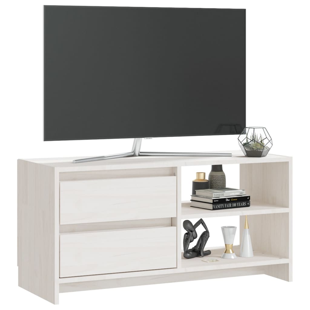 Bringe einen Hauch von Eleganz und Komfort in deine Inneneinrichtung mit diesem trendigen TV-Möbel! Aus massivem Kiefernholz gefertigt, ist der TV-Tisch robust, stabil und auf eine lange Lebensdauer ausgelegt. Mit seinen Fächern bietet dieser Schrank ausreichend Platz für Zeitschriften, Fernbedienungen, Bilderrahmen usw. Er sorgt mit seiner Ablagefläche für mehr Ordnung in jedem Wohnraum.