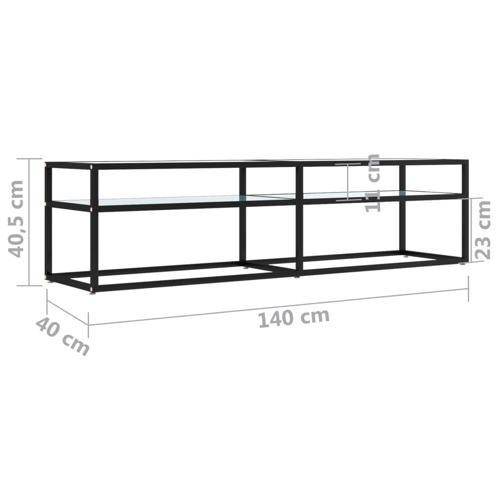 Dieses TV-Möbel wird mit seinem schlanken und modernen Design eine praktische Ergänzung zu deinem Wohnzimmer sein. Der TV-Tisch ist aus gehärtetem Glas gefertigt, wodurch er sehr robust und stabil ist. Außerdem lässt sich dieses moderne Möbelstück leicht mit einem feuchten Tuch reinigen. Der Rahmen aus pulverbeschichtetem Stahl trägt zu seiner Robustheit und einzigartiger Optik bei. Die Ablage unter der Tischplatte bietet reichlich Platz, um DVDs, Bücher und andere wichtige Kleinigkeiten geordnet und griffbereit aufzubewahren.
