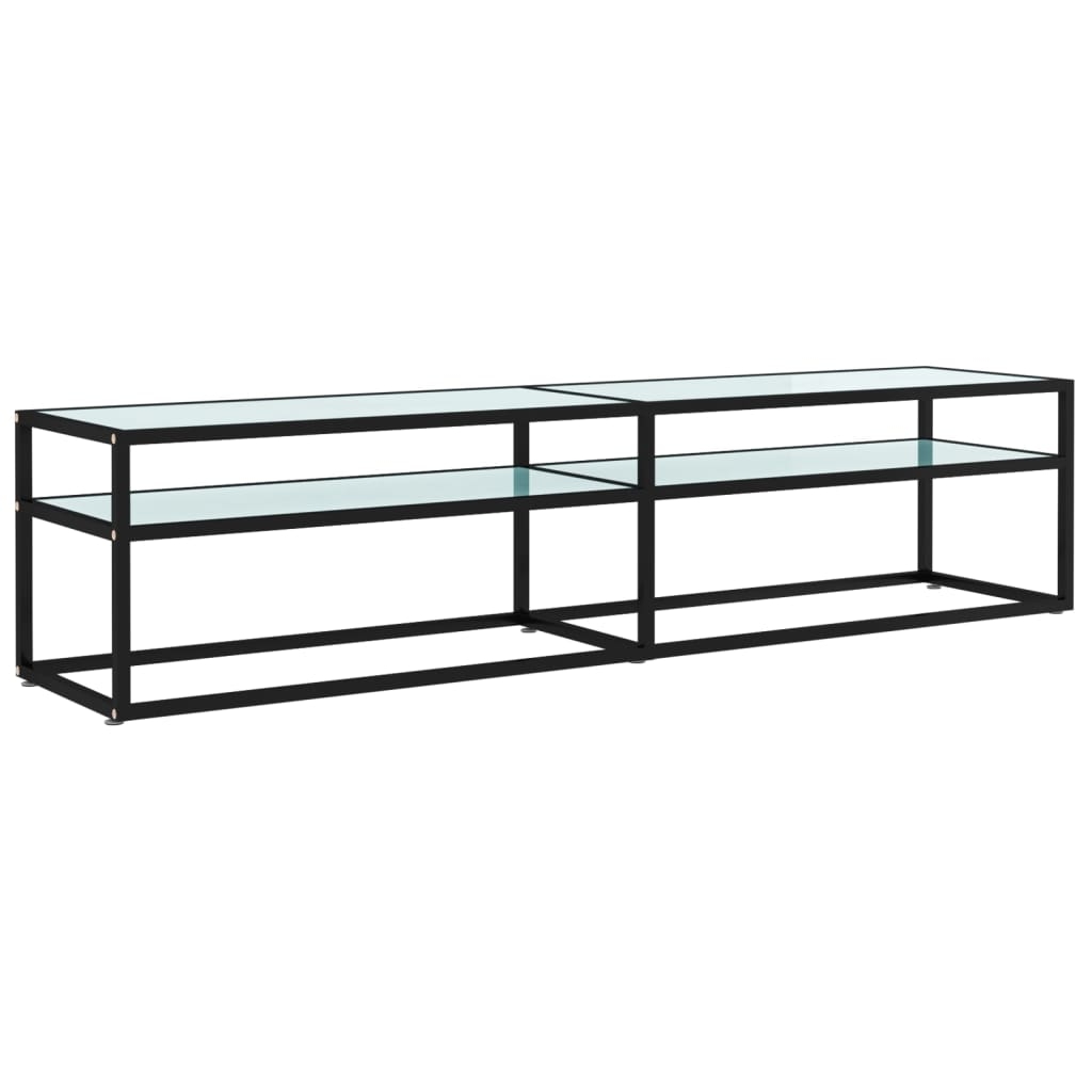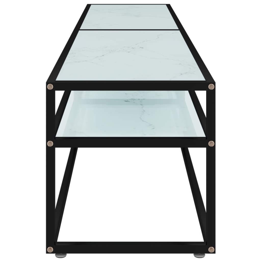 Dieses TV-Möbel wird mit seinem schlanken und modernen Design eine praktische Ergänzung zu deinem Wohnzimmer sein. Der TV-Tisch ist aus gehärtetem Glas gefertigt, wodurch er sehr robust und stabil ist. Außerdem lässt sich dieses moderne Möbelstück leicht mit einem feuchten Tuch reinigen. Der Rahmen aus pulverbeschichtetem Stahl trägt zu seiner Robustheit und einzigartiger Optik bei. Die Ablage unter der Tischplatte bietet reichlich Platz, um DVDs, Bücher und andere wichtige Kleinigkeiten geordnet und griffbereit aufzubewahren.