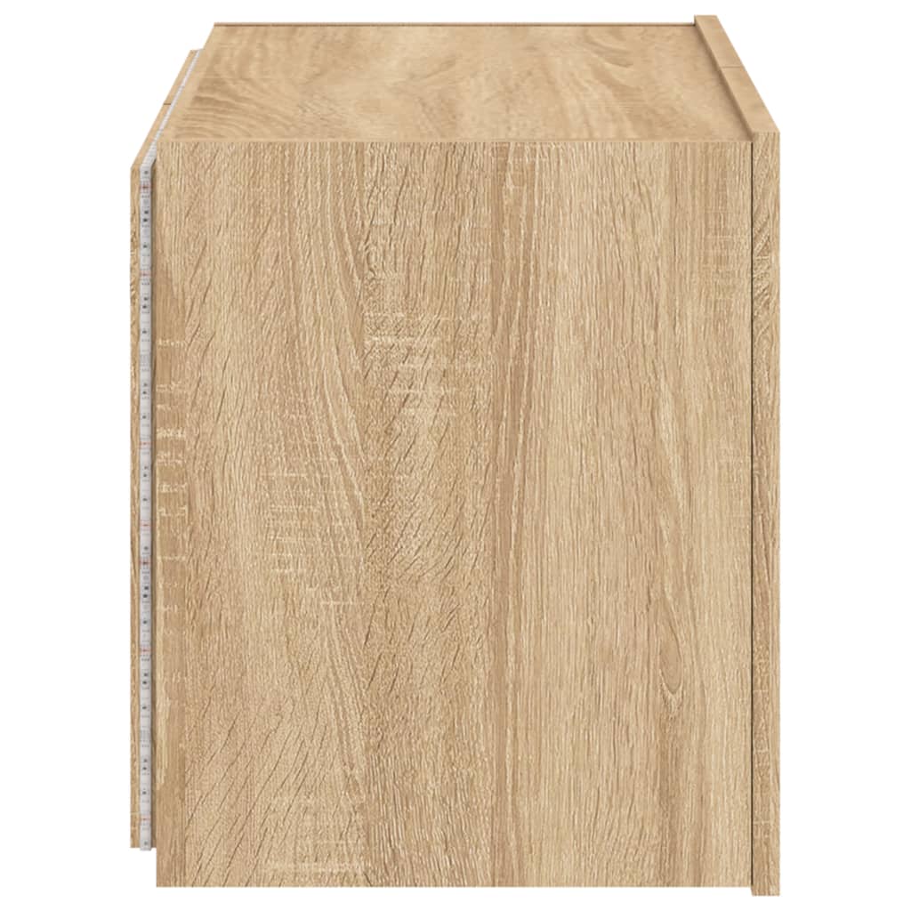 Dieser TV-Wandschrank bietet die perfekte Lösung, um zusätzlichen Stauraum in deinem Wohnraum zu schaffen und für Ordnung zu sorgen. Langlebiges Material: Holzwerkstoff ist ein Material von außergewöhnlicher Qualität mit glatter Oberfläche, das sich durch Festigkeit, Stabilität und Feuchtigkeitsbeständigkeit auszeichnet.RGB-LED-Beleuchtung: Der Wandschrank ist mit lebendigen RGB-LED-Leuchten ausgestattet. Mit verschiedenen anpassbaren Menüs kannst du die Farbe der Lichter mühelos wechseln und sie sogar auf automatische Anpassung einstellen. Diese LED-Leuchten unterstreichen nicht nur den modernen Look des TV-Schwebeschranks, sondern tragen auch zu seinem trendigen Design bei.Reichlich Stauraum: Der TV-Wandschrank verfügt über 2 Fächer hinter den Türen, die reichlich Platz bieten, um verschiedene Kleinigkeiten wie Bücher, DVDs und Zeitschriften ordentlich und griffbereit aufzubewahren.Vielseitig: Der Schrank lässt sich vielseitig einsetzen und sowohl als TV-Konsole als auch als Wand-Nachttisch verwenden. Du kannst ihn auch mit anderen Schränken kombinieren, um eine atemberaubende Wohnwand zu schaffen.Wandmontage: Der LED-Schrank lässt sich an der Wand montieren, um zusätzlichen Stauraum zu schaffen. Auf diese Weise kannst du deine Bodenfläche maximieren und für Ordnung im Raum sorgen. Gut zu wissen:Schrauben und Dübel für die Innenseite der Wand sind nicht enthalten. Wir empfehlen dir, Schrauben und Dübel zu finden und zu verwenden, die speziell für deine Wände geeignet sind. Wenn du dir nicht sicher bist, kannst du dich an einen Fachmann wenden. Bitte lies und befolge jeden Schritt in der Anleitung.Das Produkt verfügt über einen USB-Anschluss, für den eine zertifizierte 5V-USB-Stromquelle erforderlich ist (nicht im Lieferumfang enthalten).