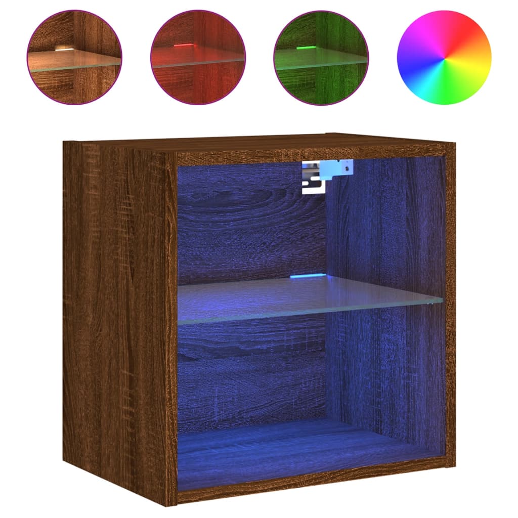Mit ihrem trendigen und dennoch praktischen Design werden diese Nachttische mit LED-Leuchten echte Hingucker in deinem Zimmer sein. Langlebiges Material: Der Holzwerkstoff ist von außergewöhnlicher Qualität mit glatter Oberfläche und zeichnet sich außerdem durch Festigkeit, Stabilität und Widerstandsfähigkeit gegen Feuchtigkeit aus.Reichlich Stauraum: Diese Nachttische bieten praktischen Stauraum, um deine Zeitschriften, Fernbedienungen und verschiedene Kleinigkeiten gut organisiert und in Reichweite aufzubewahren.RGB-LED-Leuchten: Diese Nachttische sind mit RGB-LED-Leuchten ausgestattet, die über verschiedene Menüs verfügen, um die Lichtfarbe zu wechseln und automatische Farbeinstellungen vorzunehmen.Präsentation: Die robuste Oberplatte des Schranks eignet sich ideal, um Dekoartikel, Bilderrahmen oder Topfpflanzen zur Schau zu stellen.Wandmontage: Dieser Schlafzimmerschrank lässt sich an der Wand befestigen, um zusätzlichen Stauraum zu schaffen. Auf diese Weise kannst du deine Bodenfläche maximieren und für Ordnung im Raum sorgen. Gut zu wissen:Schrauben und Dübel für die Innenseite der Wand sind nicht enthalten. Wir empfehlen dir, Schrauben und Dübel zu finden und zu verwenden, die speziell für deine Wände geeignet sind. Wenn du dir nicht sicher bist, kannst du dich an einen Fachmann wenden. Bitte lies und befolge jeden Schritt in der Anleitung.Das Produkt verfügt über einen USB-Anschluss, für den eine zertifizierte 5V-USB-Stromquelle erforderlich ist (nicht im Lieferumfang enthalten).
