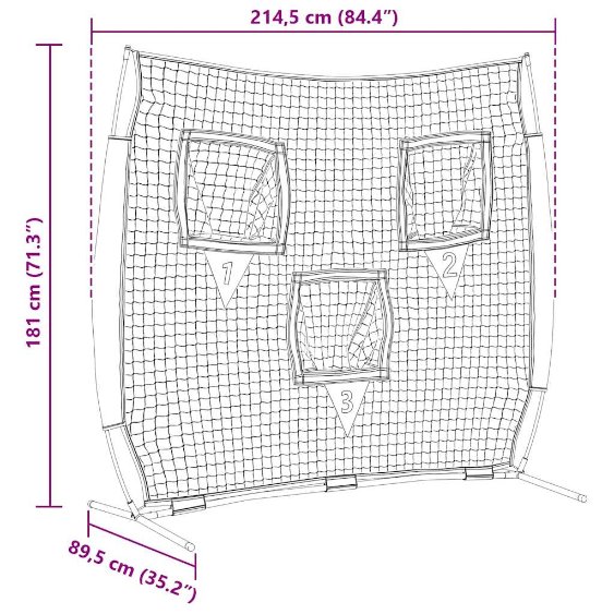 - Lieferumfang: 1 x Baseball Übungsnetz, 1 x Tragetasche, 4 x Bodenpfosten