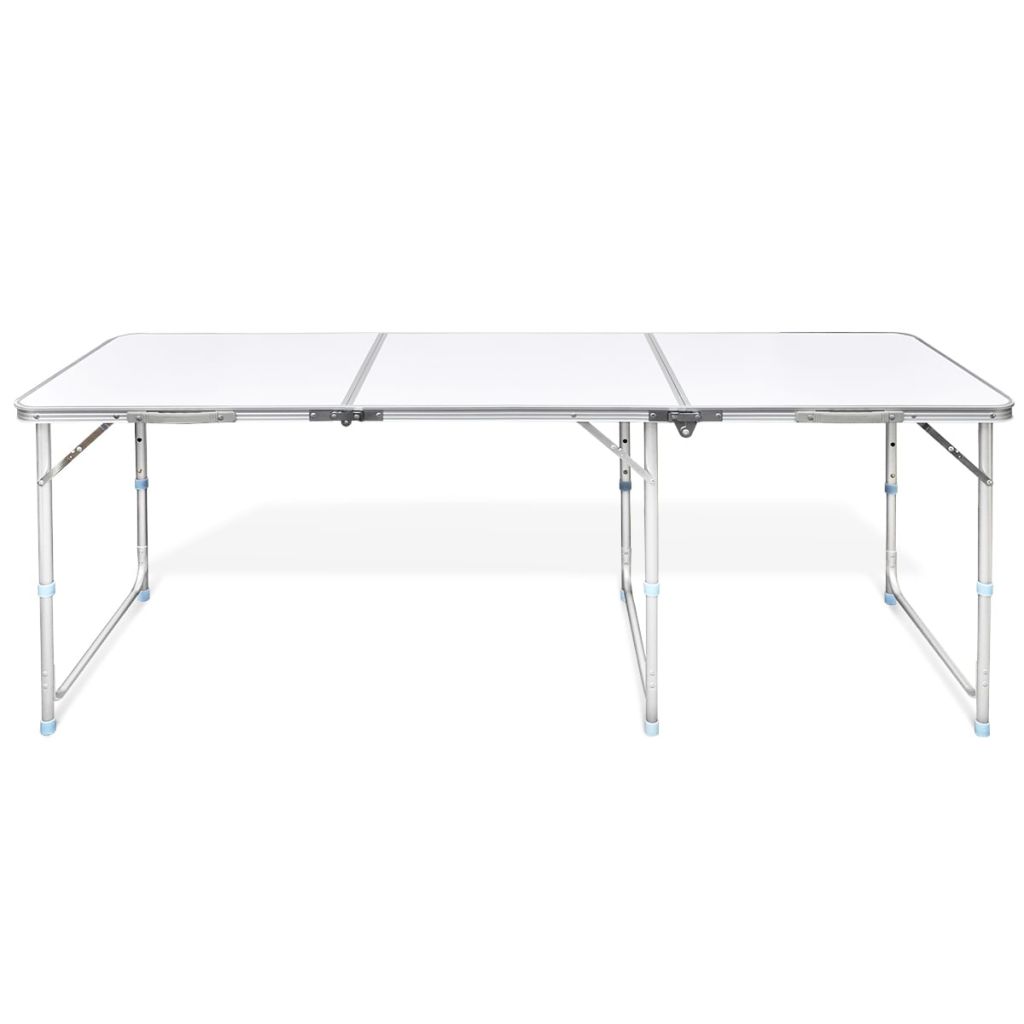 Dieser zusammenklappbare Tisch bietet eine zusätzliche Abstellfläche überall dort wo er benötigt wird, egal ob in der Küche, beim Camping oder im Garten. Der Tisch ist höhenverstellbar (55 cm, 62 cm und 70 cm Höhe einstellbar). Der Klapptisch ist leicht und kann zusammengefaltet werden, wenn er nicht benötigt wird. Dadurch ist er sehr platzsparend und kann gut transportiert und gelagert werden. Der Handgriff ermöglicht es den Tisch bequem zu transportieren. Dank des robusten Rahmens kann der Tisch 30 - 50 kg tragen. Die MDF Tischplatte ist robust und langlebig.