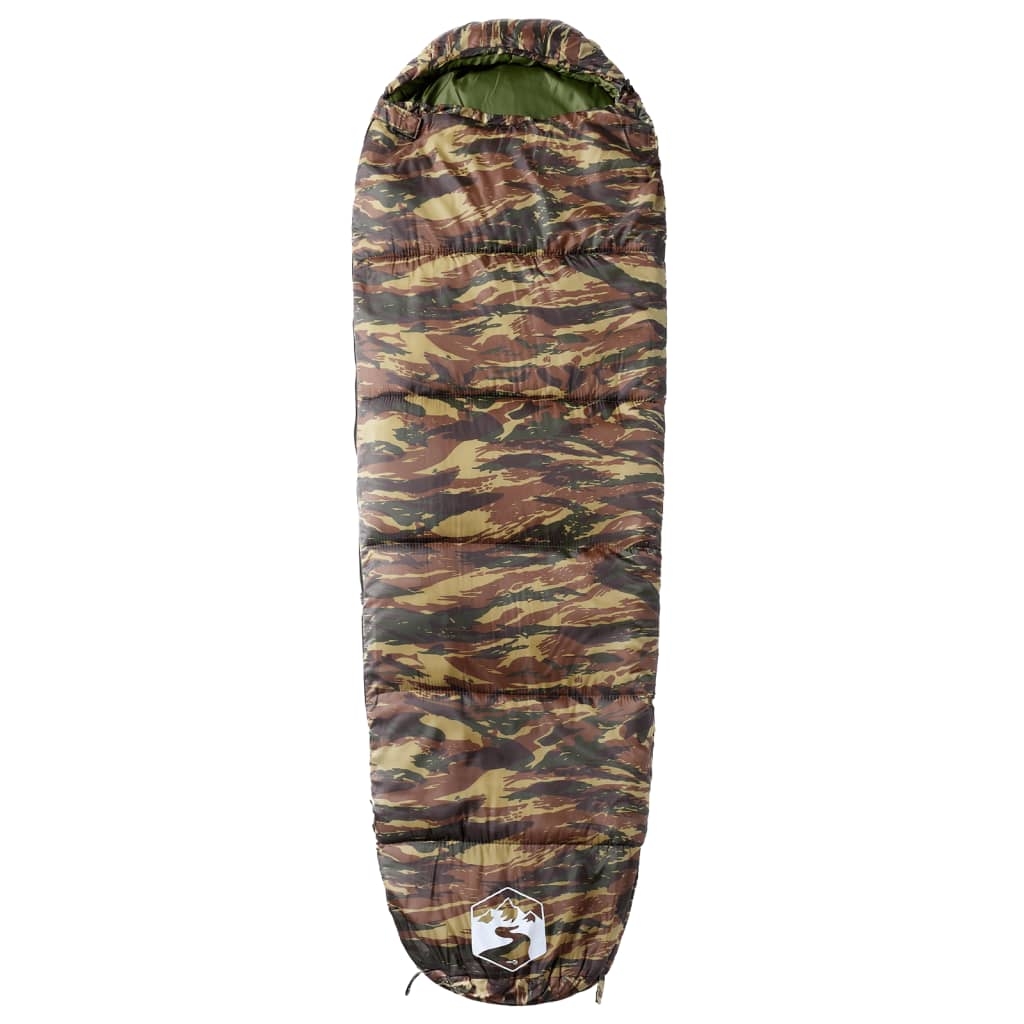Mit diesem Mumienschlafsack genießt du Komfort auf deinen Abenteuern. Egal, ob beim Campen, Wandern oder auf Reisen, er ist dein perfekter Begleiter. Langlebig und wasserfest: Dieser Schlafsack verfügt über eine Außenschicht aus Polyester und eine PP-Polsterung, wodurch er langlebig, feuchtigkeitsfest, wasserfest und witterungsbeständig ist.Bequem und warm: Der Schlafsack ist mit Polypropylen gefüllt. Zudem lässt sich die Kapuze über den Kordelzug um deinen Kopf ziehen, um einen warmen und bequemen Schlaf zu genießen. Doppelseitiger Reißverschluss: Der Schlafsack ist mit einem doppelseitigen Reißverschluss ausgestattet, der die interne Luftzirkulation verbessert und eine einfache Regelung der Temperatur im Schlafsack ermöglicht. Zudem verfügt er über Sicherheitsgurte, die das Lösen des Reißverschlusses verhindern.Einfacher Transport und einfache Lagerung: Dieser Schlafsack kennzeichnet sich durch ein geringes Eigengewicht und lässt sich nach dem Zusammenrollen im kompakten Transportbeutel platzsparend verstauen. Zudem ist er mit einer Aufhängeschlaufe versehen, die den Transport und die Lagerung erleichtert. Mumienform: Dieser Mumienschlafsack wurde mit Bedacht auf Wärme entwickelt. Seine schmale Mumienform schmiegt sich eng an den Körper, um die natürliche Körperwärme zu speichern und vor Kälte zu isolieren.Breite Anwendungen: Dieser Schlafsack sorgt für einen guten und erholsamen Schlaf nach einem harten Wandertag. Er eignet sich für Camping, Trekking, Wandern, Reisen oder andere Aktivitäten im Freien und lässt sich im Frühling, Sommer und Herbst verwenden.