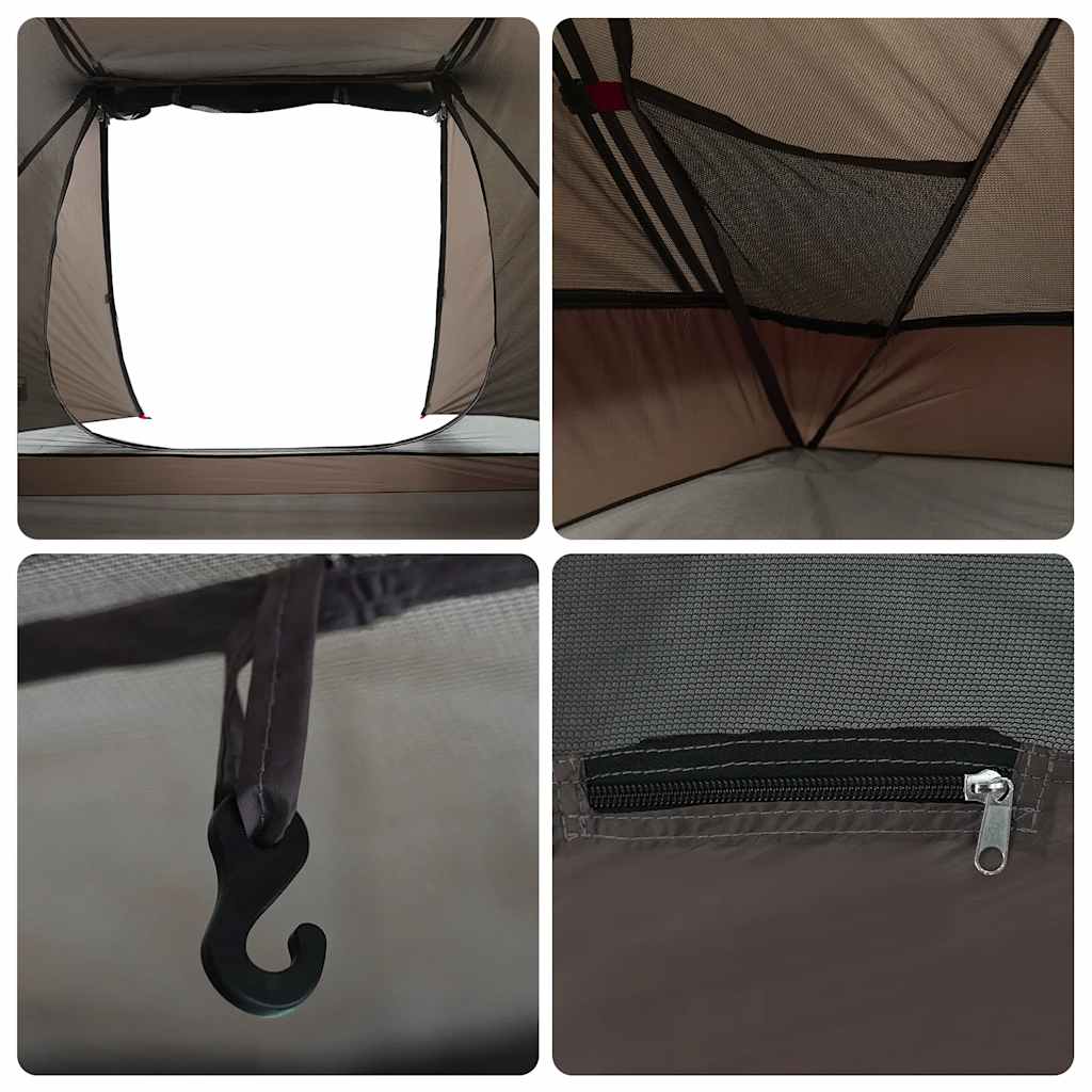 Dieses Angelzelt eignet sich perfekt, um beim Angeln etwas Schatten zu spenden und Schutz vor schädlichen UV-Strahlen zu bieten. Rundum wasserdichtes Design: Aus Polyester mit PU-Beschichtung gefertigt, ist dieses Campingzelt wasser- und winddicht. Die versiegelten Nähte verhindern effektiv das Eindringen von Regenwasser, während die strapazierfähige Bodenplane für ein trockenes und komfortables Interieur sorgt. Einfacher Auf- und Abbau: Die hochflexiblen und leichten Glasfaserstangen und das praktische Steckverbindungssystem machen den Auf- und Abbau des Zeltes zum Kinderspiel. Einfacher Zugang: Der Eingang mit Reißverschluss ermöglicht einen einfachen Zugang. Er lässt sich einfach aufrollen und mit Knebelknöpfen befestigen. So kannst du für eine gute Luftzirkulation und viel natürliches Licht im Zelt sorgen. Praktischer Zugang zum Stromkabel: Dank des E-Anschlusses kannst du ganz einfach ein Verlängerungskabel von einer externen Stromquelle an dein Zelt anschließen.Leicht und tragbar: Dank des faltbaren und leichten Designs lässt sich das Zelt einfach verpacken und in der mitgelieferten Tragetasche mühelos verstauen und transportieren. Achtung:Halte alle Flammen und Wärmequellen von diesem Zeltstoff fern.
