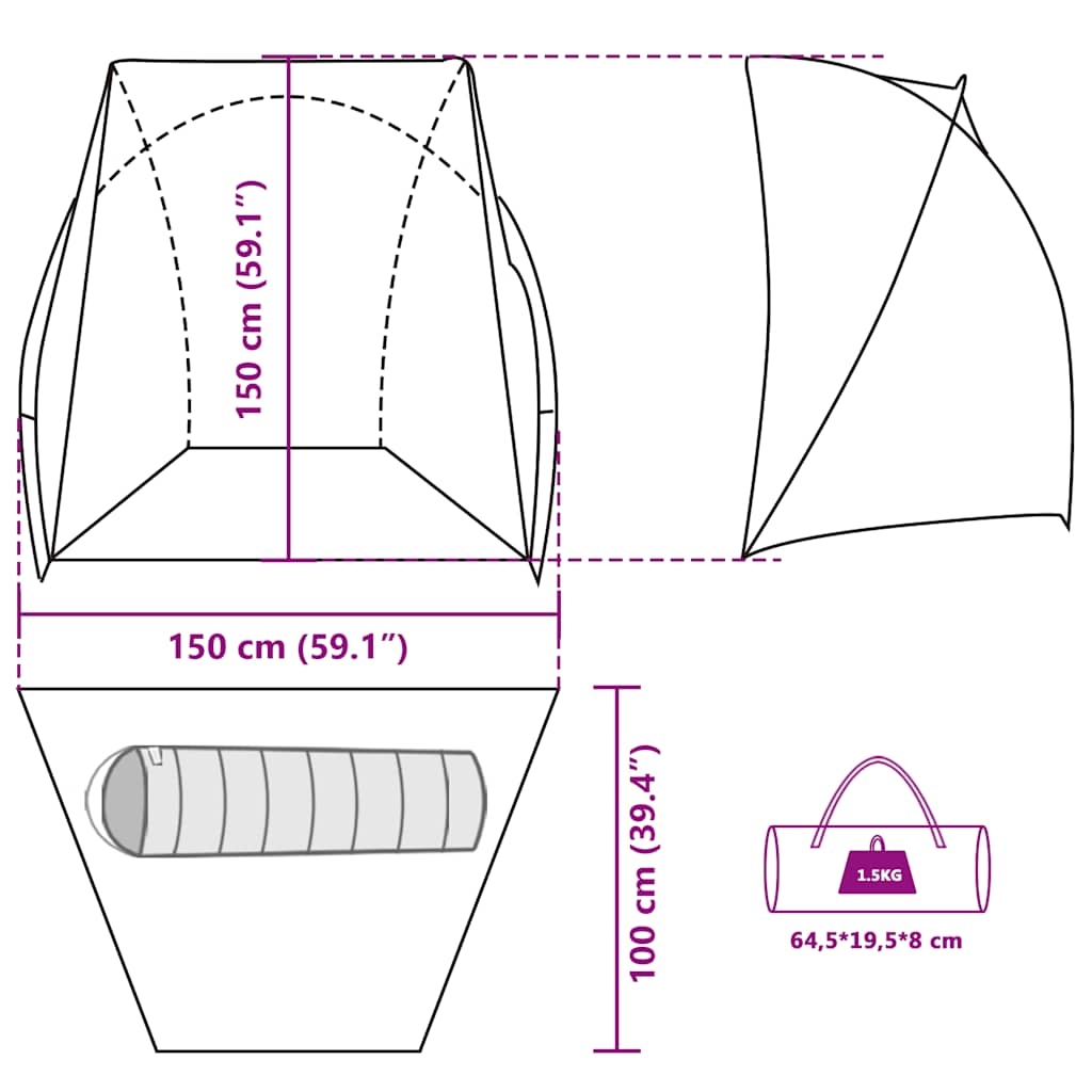 - Gesamtabmessungen: 150 x 100 x 150 cm (L x B x H)