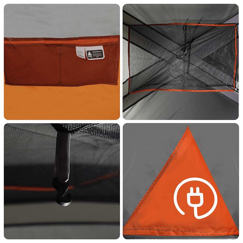 Dieses moderne Familienzelt schützt vor unangenehmen Wetter und bietet einen komfortablen Platz bei Abenteuern. Rundum wasserdichtes Design: Aus Polyester mit PU-Beschichtung gefertigt, ist dieses Campingzelt wasser- und winddicht. Die versiegelten Nähte verhindern effektiv das Eindringen von Regenwasser, während die strapazierfähige Bodenplane für ein trockenes und komfortables Interieur sorgt.Abnehmbares Überzelt: Das abnehmbare Überzelt lässt sich an der Zeltoberseite befestigen, um Wetterschutz zu bieten und Privatsphäre zu schaffen.Gute Belüftung und Insektenschutz: Die Netzwände bieten nicht nur eine hervorragende Belüftung, sondern halten auch Insekten effektiv fern, um den Benutzern ein komfortables und insektenfreies Erlebnis zu bieten.Praktischer Zugang zum Stromkabel: Dank des E-Anschlusses kannst du ganz einfach ein Verlängerungskabel von einer externen Stromquelle an dein Zelt anschließen.Leicht und tragbar: Dank des faltbaren und leichten Designs lässt sich das Zelt einfach verpacken und in der mitgelieferten Tragetasche mühelos verstauen und transportieren. Achtung:Halte alle Flammen und Wärmequellen von diesem Zeltstoff fern.