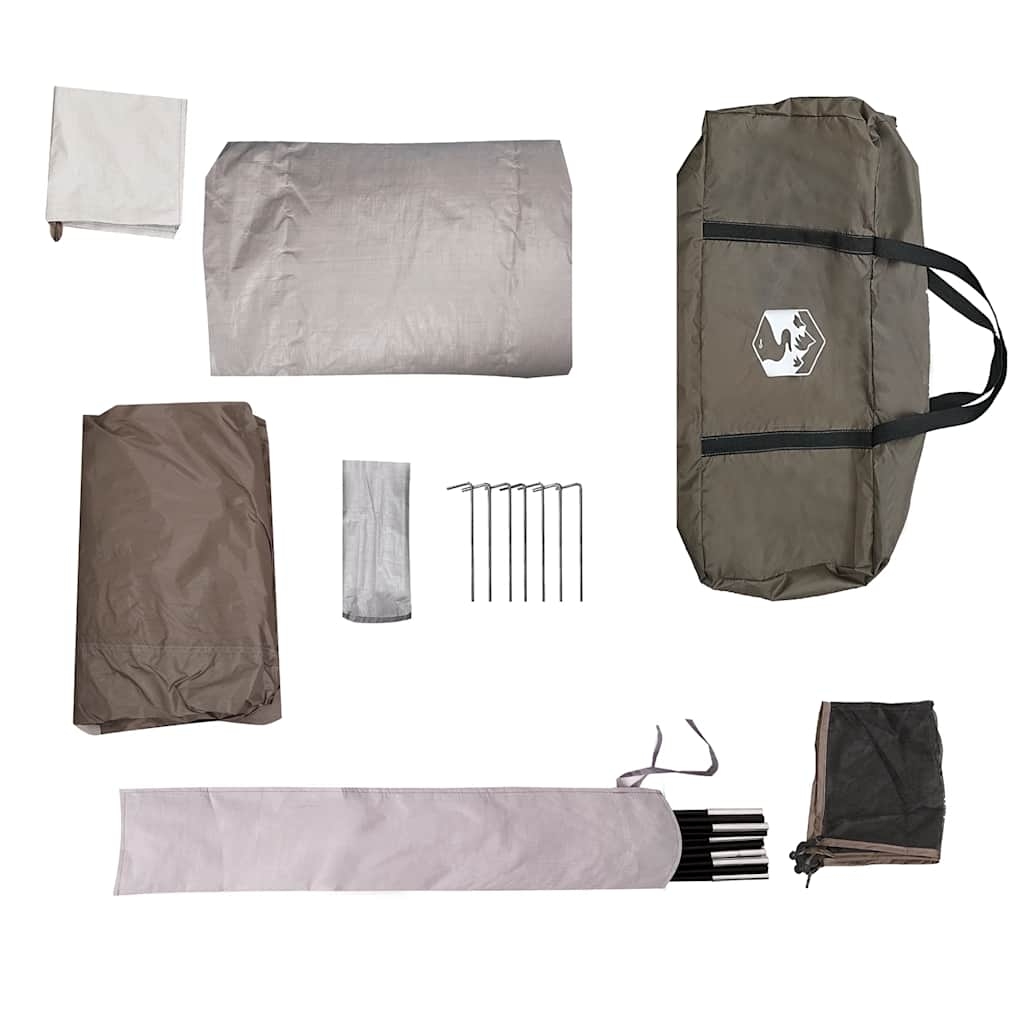 Dieses Campingzelt im modernen Look schützt vor unangenehmen Wetter und bietet einen komfortablen Ort bei Abenteuern. Rundum wasserdichtes Design: Aus Polyester mit PU-Beschichtung gefertigt, ist dieses Campingzelt wasser- und winddicht. Die versiegelten Nähte verhindern effektiv das Eindringen von Regenwasser, während die strapazierfähige Bodenplane für ein trockenes und komfortables Interieur sorgt. Einfacher Auf- und Abbau: Die hochflexiblen und leichten Glasfaserstangen und das praktische Steckverbindungssystem machen den Auf- und Abbau des Zeltes zum Kinderspiel. Abnehmbares Überzelt: Das abnehmbare Überzelt lässt sich an der Zeltoberseite befestigen, um Wetterschutz zu bieten und Privatsphäre zu schaffen. Praktischer Zugang zum Stromkabel: Dank des E-Anschlusses kannst du ganz einfach ein Verlängerungskabel von einer externen Stromquelle an dein Zelt anschließen. Leicht und tragbar: Dank des faltbaren und leichten Designs lässt sich das Zelt einfach verpacken und in der mitgelieferten Tragetasche mühelos verstauen und transportieren. Achtung:Halte alle Flammen und Wärmequellen von diesem Zeltstoff fern.