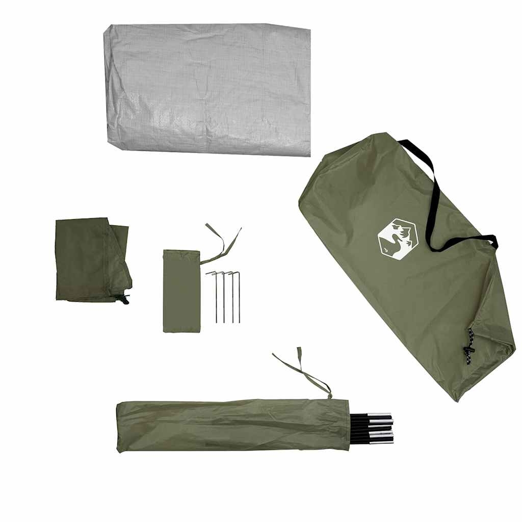 Dieses Campingzelt im modernen Look schützt vor unangenehmen Wetter und bietet einen komfortablen Ort bei Abenteuern. Rundum wasserdichtes Design: Aus Polyester mit PU-Beschichtung gefertigt, ist dieses Campingzelt wasser- und winddicht. Die versiegelten Nähte verhindern effektiv das Eindringen von Regenwasser, während die strapazierfähige Bodenplane für ein trockenes und komfortables Interieur sorgt.Gute Belüftung: Dieses Campingzelt verfügt über eine Lüftungsöffnung, um das Innenzelt frisch und kühl zu halten. Einfacher Zugang: Der Eingang mit Reißverschluss ermöglicht einen einfachen Zugang. Er lässt sich einfach aufrollen und mit Knebelknöpfen befestigen. So kannst du für eine gute Luftzirkulation und viel natürliches Licht im Zelt sorgen. Zusätzlicher Stauraum: In der Aufbewahrungstasche kannst du Mobiltelefon, Schlüssel oder verschiedene Kleinigkeiten ordentlich und griffbereit aufbewahren. Leicht und tragbar: Dank des faltbaren und leichten Designs lässt sich das Zelt einfach verpacken und in der mitgelieferten Tragetasche mühelos verstauen und transportieren. Achtung:Halte alle Flammen und Wärmequellen von diesem Zeltstoff fern.