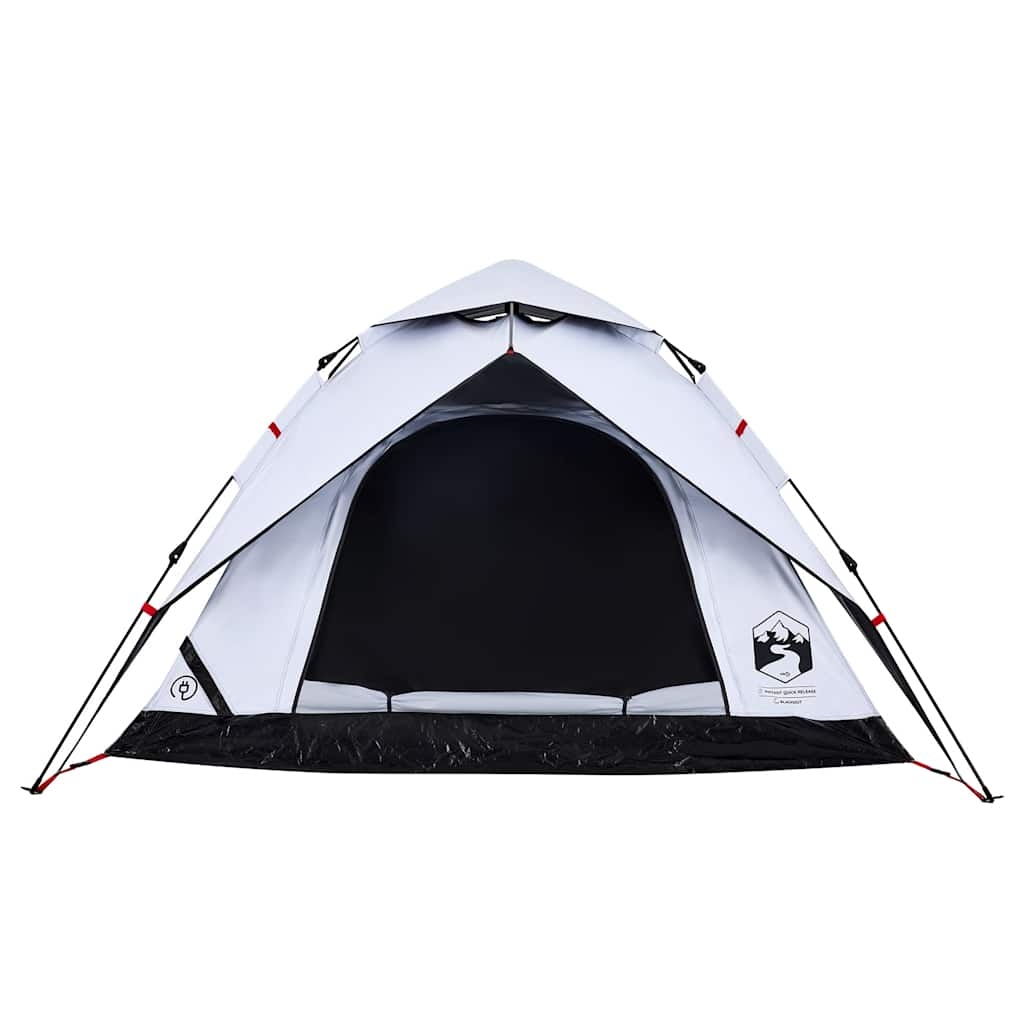 Dieses moderne Familienzelt schützt vor unangenehmen Wetter und bietet einen komfortablen Platz bei Abenteuern. Rundum wasserdichtes Design: Aus Polyester mit PU-Beschichtung gefertigt, ist dieses Campingzelt wasser- und winddicht. Die versiegelten Nähte verhindern effektiv das Eindringen von Regenwasser, während die strapazierfähige Bodenplane für ein trockenes und komfortables Interieur sorgt.Weißer Verdunkelungsstoff: Die speziell entworfene Zeltplane hält 99 % des Tageslichtes ab und sorgt so für eine kühlere und bequemere Schlafumgebung. Verabschiede dich also von der Morgensonne und genieße einen erholsamen Schlaf.Quick-Release-System: Dank des Quick-Release-Systems lässt sich das Zelt mühelos aufbauen! Lege das Zelt auf den Boden, ziehe das vormontierte Gestänge heraus, bis es einrastet, und schon ist das Zelt einsatzbereit!Abnehmbares Überzelt: Das abnehmbare Überzelt lässt sich an der Zeltoberseite befestigen, um Wetterschutz zu bieten und Privatsphäre zu schaffen.Gute Belüftung und Insektenschutz: Die Netzwände bieten nicht nur eine hervorragende Belüftung, sondern halten auch Insekten effektiv fern, um den Benutzern ein komfortables und insektenfreies Erlebnis zu bieten.Praktischer Zugang zum Stromkabel: Dank des E-Anschlusses kannst du ganz einfach ein Verlängerungskabel von einer externen Stromquelle an dein Zelt anschließen. Achtung:Halte alle Flammen und Wärmequellen von diesem Zeltstoff fern.