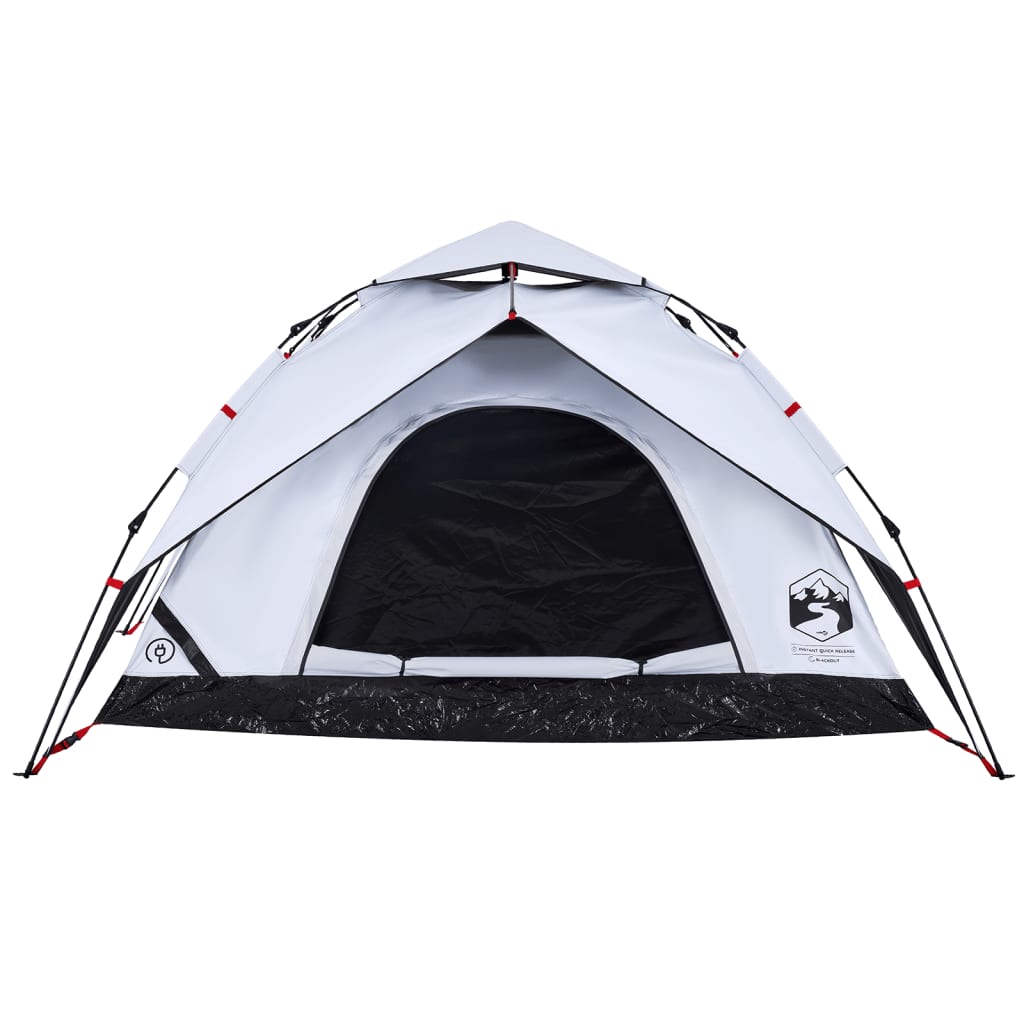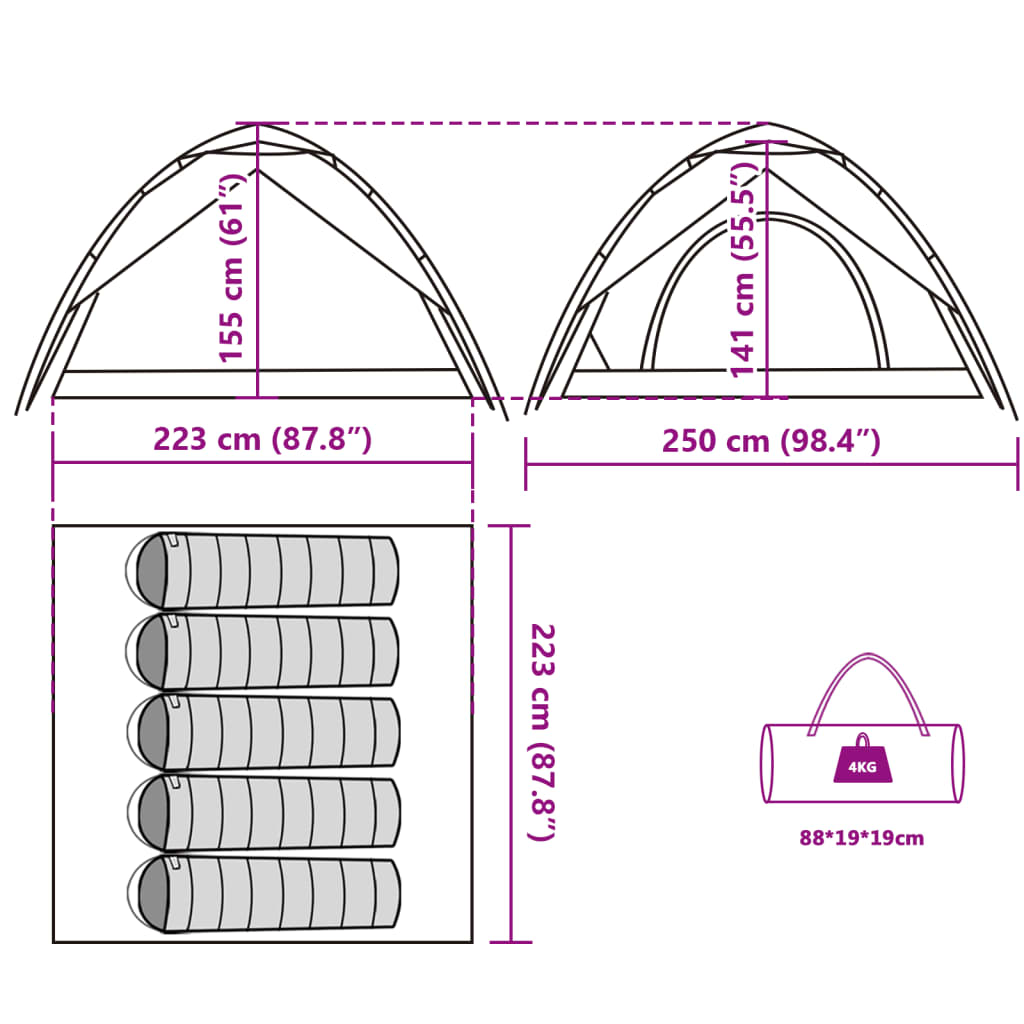 Dieses moderne Familienzelt schützt vor unangenehmen Wetter und bietet einen komfortablen Platz bei Abenteuern. Rundum wasserdichtes Design: Aus Polyester mit PU-Beschichtung gefertigt, ist dieses Campingzelt wasser- und winddicht. Die versiegelten Nähte verhindern effektiv das Eindringen von Regenwasser, während die strapazierfähige Bodenplane für ein trockenes und komfortables Interieur sorgt.Weißer Verdunkelungsstoff: Die speziell entworfene Zeltplane hält 99 % des Tageslichtes ab und sorgt so für eine kühlere und bequemere Schlafumgebung. Verabschiede dich also von der Morgensonne und genieße einen erholsamen Schlaf.Quick-Release-System: Dank des Quick-Release-Systems lässt sich das Zelt mühelos aufbauen! Lege das Zelt auf den Boden, ziehe das vormontierte Gestänge heraus, bis es einrastet, und schon ist das Zelt einsatzbereit!Abnehmbares Überzelt: Das abnehmbare Überzelt lässt sich an der Zeltoberseite befestigen, um Wetterschutz zu bieten und Privatsphäre zu schaffen.Gute Belüftung und Insektenschutz: Die Netzwände bieten nicht nur eine hervorragende Belüftung, sondern halten auch Insekten effektiv fern, um den Benutzern ein komfortables und insektenfreies Erlebnis zu bieten.Praktischer Zugang zum Stromkabel: Dank des E-Anschlusses kannst du ganz einfach ein Verlängerungskabel von einer externen Stromquelle an dein Zelt anschließen. Achtung:Halte alle Flammen und Wärmequellen von diesem Zeltstoff fern.