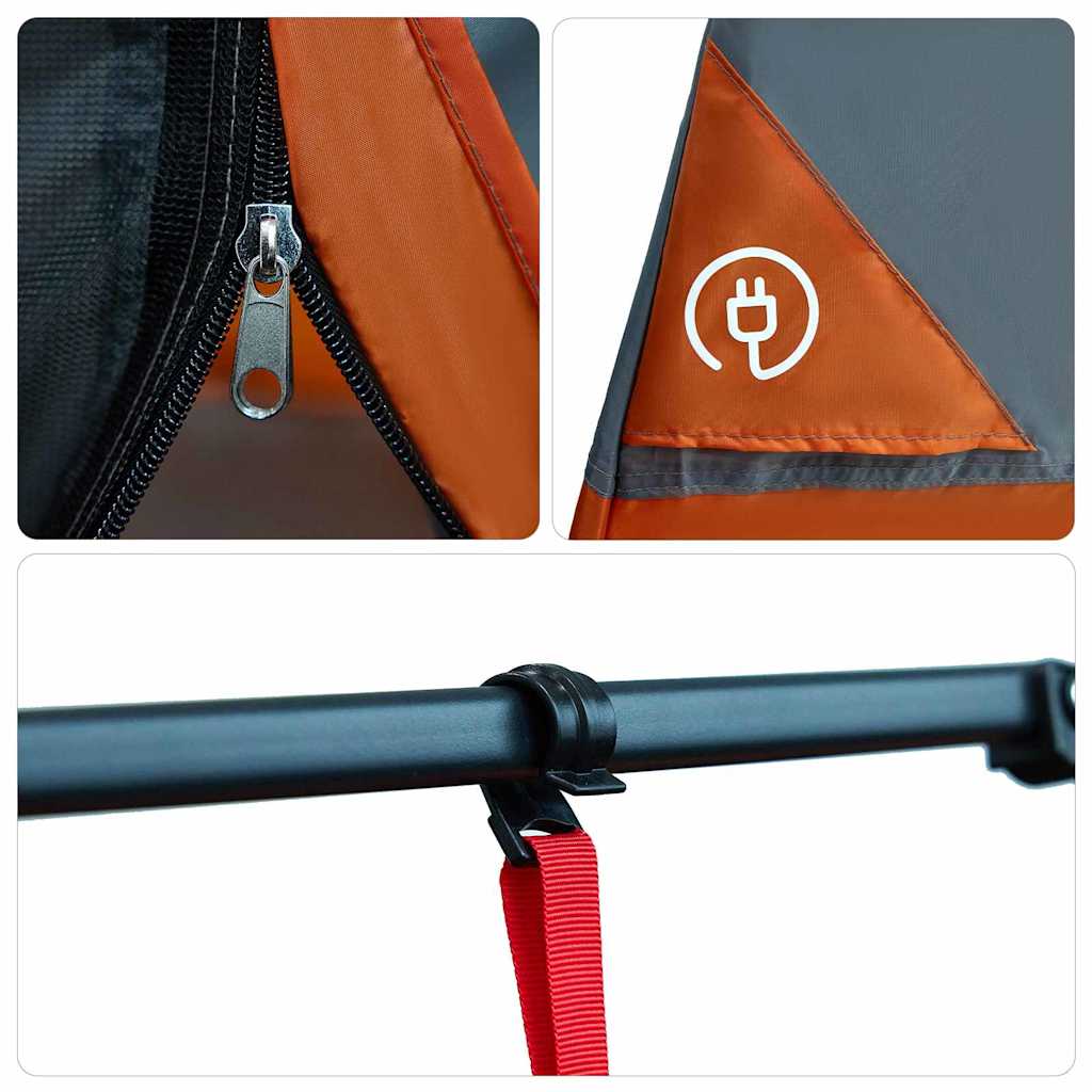 Lerne das coole Outdoor-Zelt kennen, das perfekt für deine Sommer-Camping-Action ist! Es hat einen modernen Touch und praktische Features, die jeder Outdoor-Fan liebt. Das Zelt sieht nicht nur gut aus, sondern passt auch super zu trendigen Designs – ideal für all deine Camping-Trips. Genieße die Natur in vollen Zügen, ohne auf Komfort verzichten zu müssen, dank des großzügigen Aufbaus und dem atmungsaktiven Design. Wasserdichtes Material: Hergestellt aus 185T-Polyester mit PU-Beschichtung, hält dich das Zelt trocken bei Regen und Feuchtigkeit – bereit für alle Überraschungen, die dein Campingtrip so mit sich bringt. Der robuste Stoff schützt dich, während du die frische Luft genießt. Inklusive Komponenten: Das Zelt kommt mit einem stabilen Reißverschluss für einfachen Zugang und einer angenehmen Handhabung. Das nahtlose Design sorgt dafür, dass du schnell rein und raus kommst, ohne großen Aufwand. Eine Tragetasche ist auch dabei, was das Packen und Abhauen kinderleicht macht. Atmungsaktives Design: Mit Netz-Elementen sorgt es für frischen Luftstrom, damit es auch bei Sonnenschein kühl bleibt. So verbessert sich nicht nur dein Komfort, sondern es hilft auch, Feuchtigkeit und Kondensation zu vermeiden, damit es drinnen angenehm bleibt. Vielseitige Nutzung: Perfekt für Sommer-Camping und alle möglichen Outdoor-Abenteuer, passt dieses Zelt zu allem, von Wochenendtrips bis hin zu längeren Aufenthalten in der Natur. Sein stylisches Design macht an jedem Ort eine gute Figur. Pflege & Wartung: Es sauber zu halten ist kinderleicht – einfach mit einem feuchten Tuch abwischen, um es frisch zu halten. Diese einfache Pflege sorgt dafür, dass dein Zelt jederzeit bereit für dein nächstes Abenteuer ist.