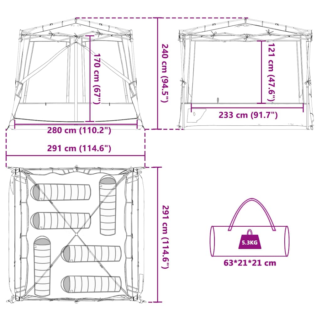 - Gesamtabmessungen: 291 x 291 x 240 cm (L x B x H)