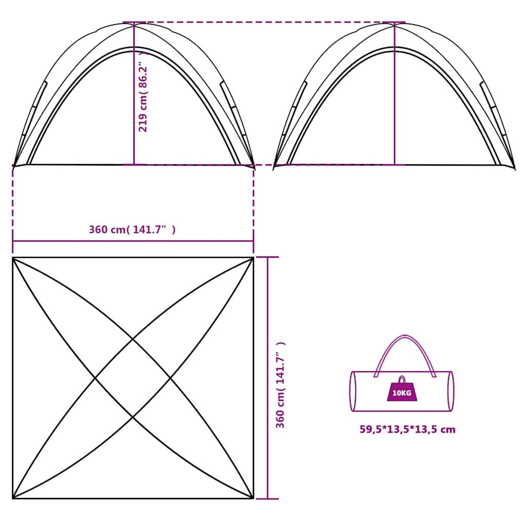 - Zelt-Abmessungen: 360 x 360 x 219 cm (L x W x H)