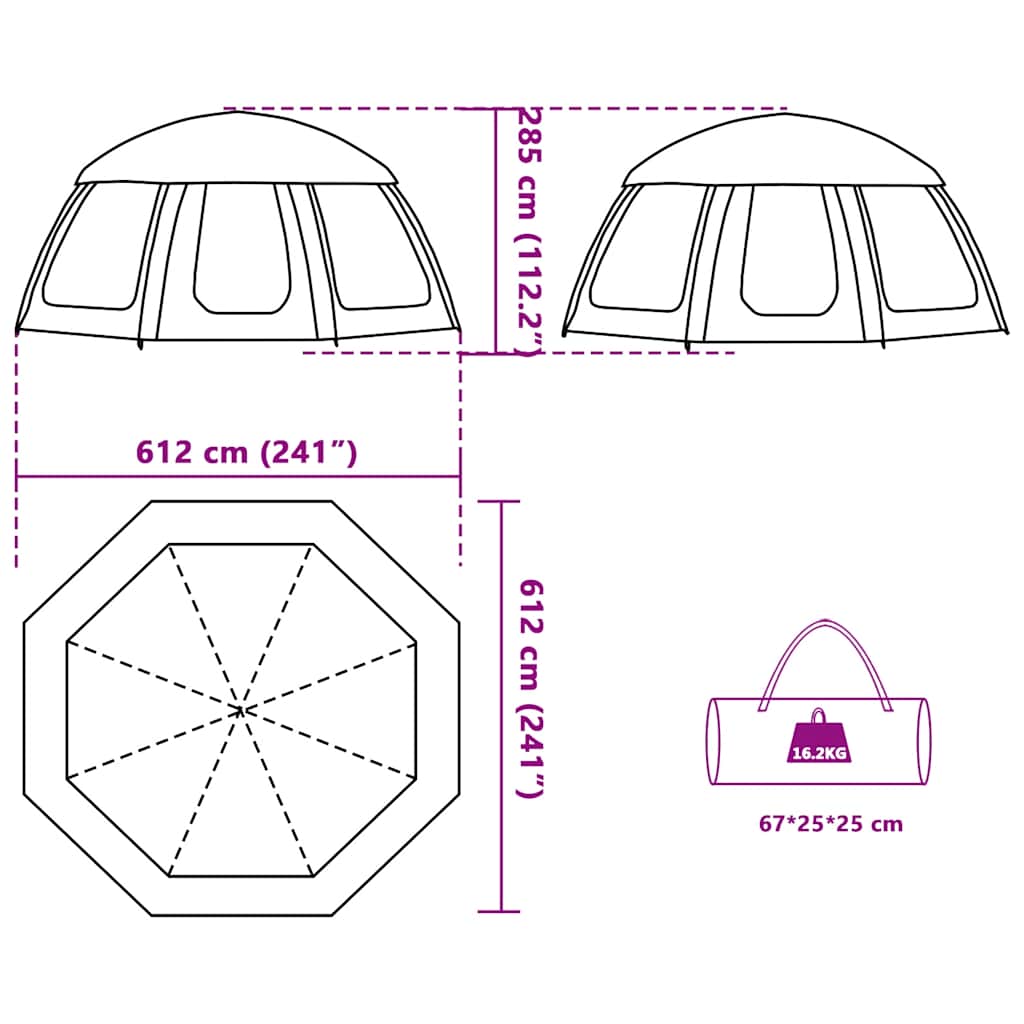- Gesamtabmessungen: 612 x 612 x 285 cm (L x B x H)