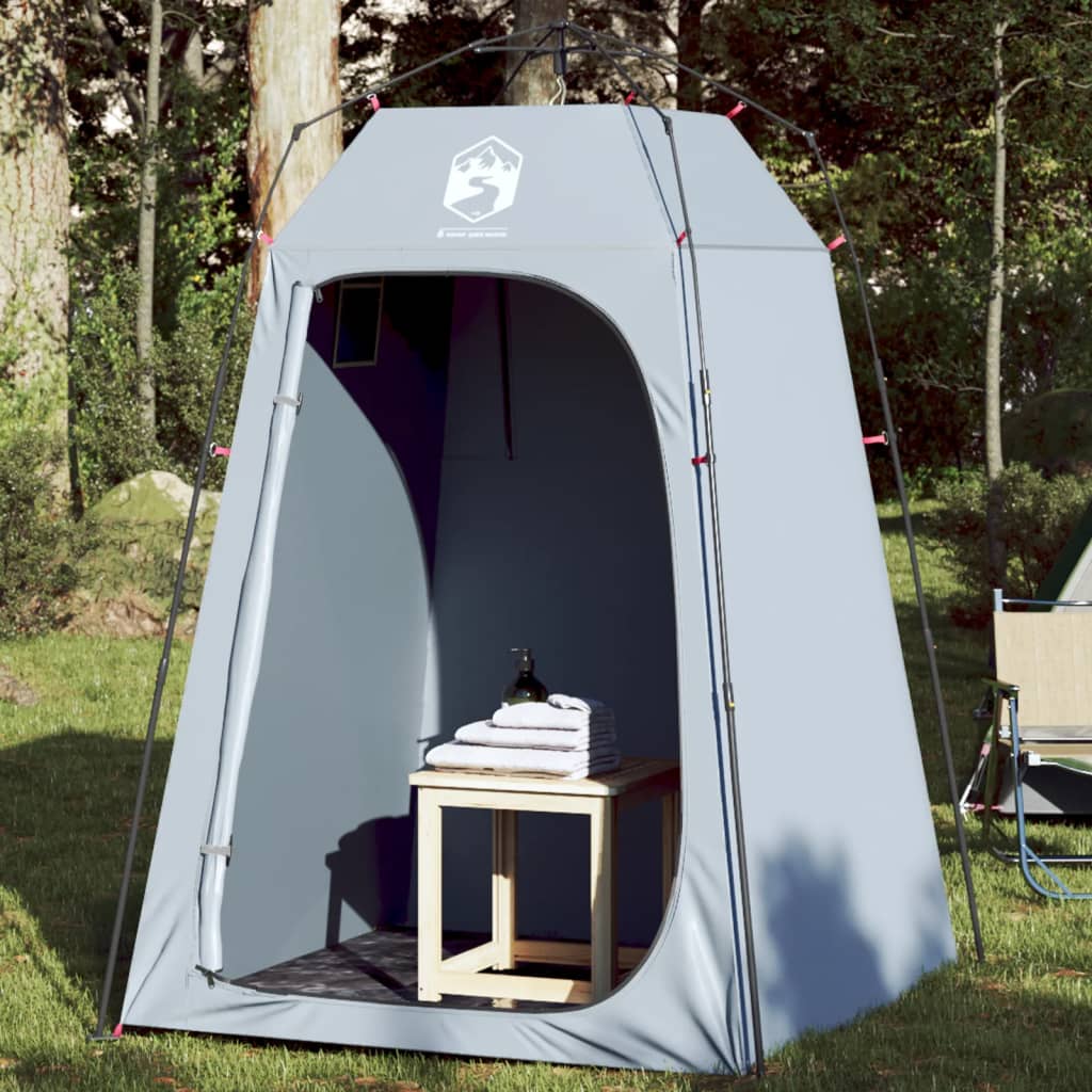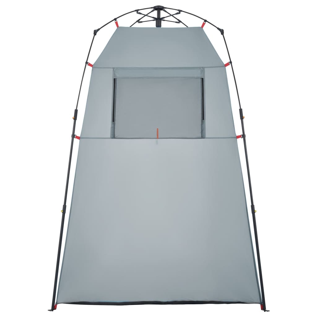 Dieses Umkleidezelt bietet Sichtschutz bei Aktivitäten im Freien und darf daher von deiner Camping-Ausrüstung nicht fehlen. Rundum wasserdicht: Aus Polyester mit PU-Beschichtung gefertigt, ist dieses Zelt wasser- und winddicht. Die strapazierfähige Bodenplane sorgt für ein trockenes und komfortables Interieur.Quick-Release-System: Dank des Quick-Release-Systems lässt sich das Zelt mühelos aufbauen! Lege das Zelt auf den Boden, ziehe das vormontierte Gestänge heraus, bis es einrastet, und schon ist das Zelt einsatzbereit!Einfacher Zugang: Der Eingang mit Reißverschluss ermöglicht einen einfachen Zugang. Er lässt sich einfach aufrollen und mit Knebelknöpfen befestigen. So kannst du für eine gute Luftzirkulation und viel natürliches Licht im Zelt sorgen.Leicht und tragbar: Dank des faltbaren und leichten Designs lässt sich das Zelt einfach verpacken und in der mitgelieferten Tragetasche mühelos verstauen und transportieren.Stabil und sicher: Befestige dein Zelt mit den mitgelieferten Heringen und Abspannseilen fest am Boden, um seine Stabilität und Sicherheit zu gewährleisten. Achtung:Halte alle Flammen und Wärmequellen von diesem Zeltstoff fern.