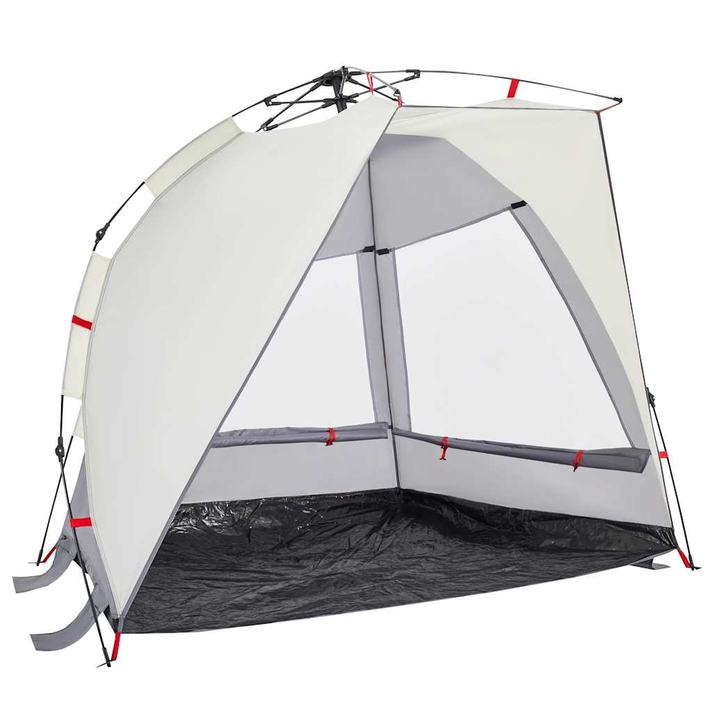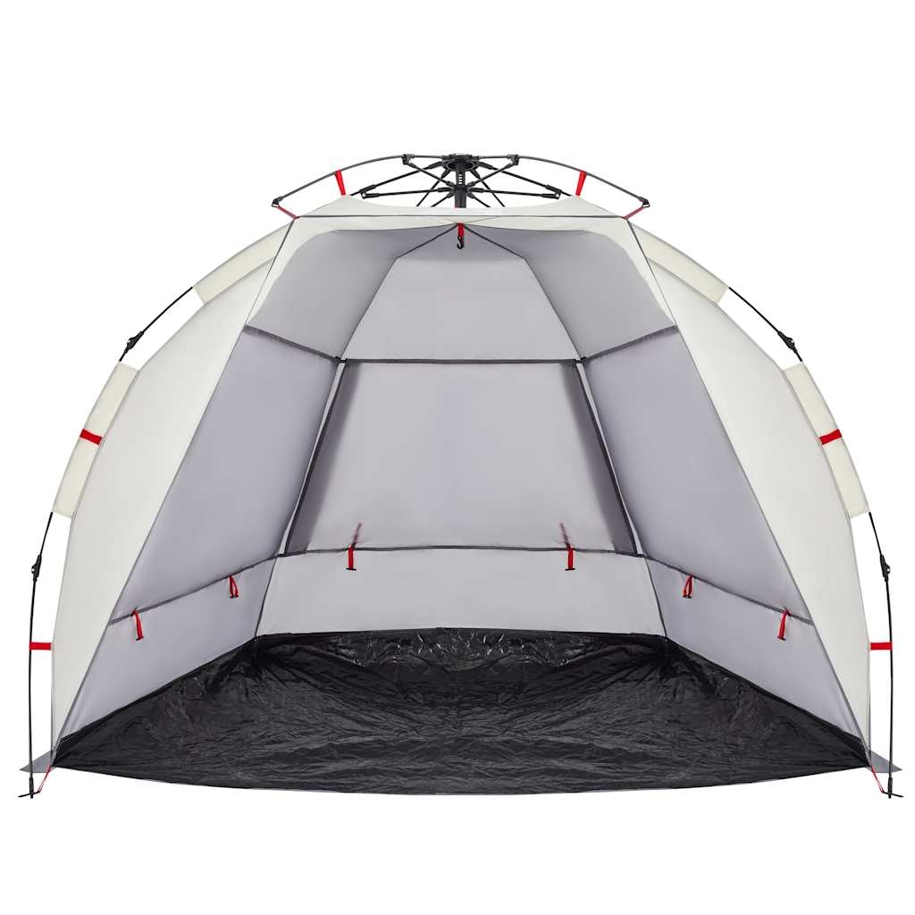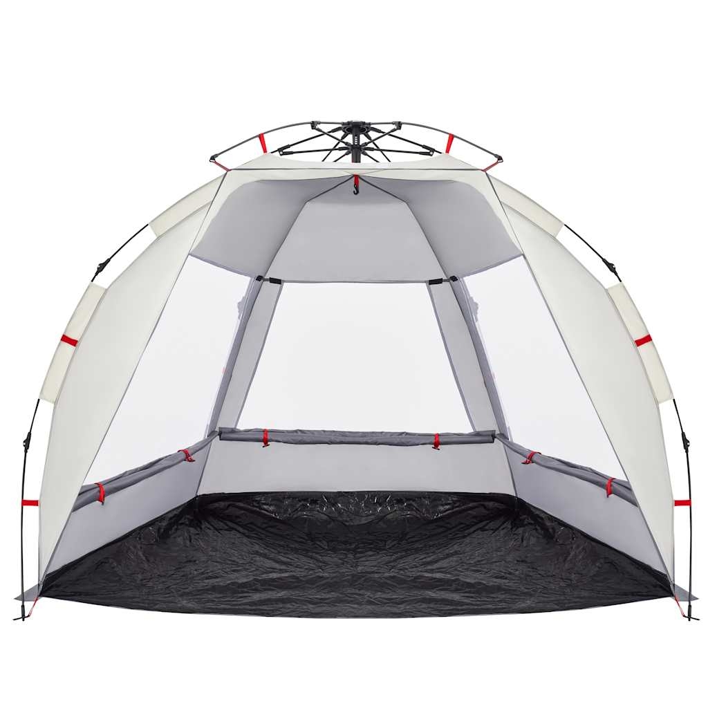 Dieses Strandzelt bietet dir und deinen Freunden einen gemütlichen Unterschlupf im heißen Sommer. Das Zelt dient auch als Schattenspender über dem Sandkasten und dem Planschbecken. Wasserdicht: Aus Polyester mit PU-Beschichtung gefertigt, ist dieses Zelt wasser- und winddicht.Quick-Release-System: Dank des Quick-Release-Systems lässt sich das Zelt mühelos aufbauen! Lege das Zelt auf den Boden, ziehe das vormontierte Gestänge heraus, bis es einrastet, und schon ist das Zelt einsatzbereit!Offener Eingang: Durch das vollständig offene Design kannst du mit deiner Familie die wunderschöne Strandlandschaft genießen oder die Kinder an einem herrlichen Sommernachmittag frei unterhalten.Leicht und tragbar: Dank des faltbaren und leichten Designs lässt sich das Zelt einfach verpacken und in der mitgelieferten Tragetasche mühelos verstauen und transportieren.Stabil und sicher: Befestige dein Zelt mit den mitgelieferten Heringen und Abspannseilen fest am Boden, um seine Stabilität und Sicherheit zu gewährleisten. Achtung:Halte alle Flammen und Wärmequellen von diesem Zeltstoff fern.