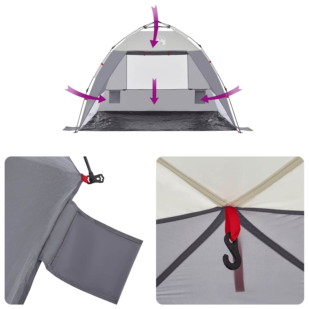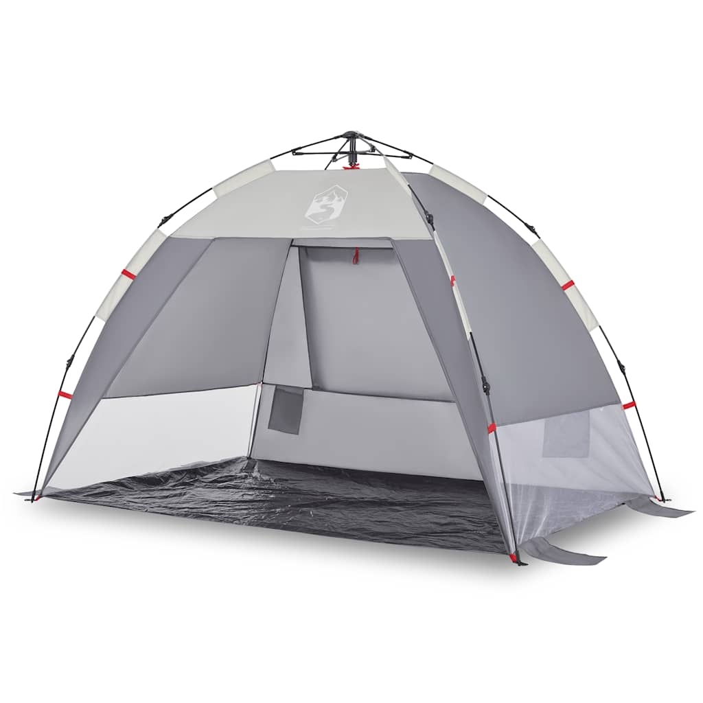 Dieses Strandzelt bietet dir und deinen Freunden einen gemütlichen Unterschlupf im heißen Sommer. Das Zelt dient auch als Schattenspender über dem Sandkasten und dem Planschbecken. Wasserdicht: Aus Polyester mit PU-Beschichtung gefertigt, ist dieses Zelt wasser- und winddicht.Quick-Release-System: Dank des Quick-Release-Systems lässt sich das Zelt mühelos aufbauen! Lege das Zelt auf den Boden, ziehe das vormontierte Gestänge heraus, bis es einrastet, und schon ist das Zelt einsatzbereit!Offener Eingang: Durch das vollständig offene Design kannst du mit deiner Familie die wunderschöne Strandlandschaft genießen oder die Kinder an einem herrlichen Sommernachmittag frei unterhalten.Angenehme Kühle durch maximale Luftströmung: Das Zelt verfügt über Seitenteile aus Netzgewebe, die für eine gute Belüftung sorgen und den Innenraum kühl und komfortabel halten.Stabil und sicher: Befestige dein Zelt mit den mitgelieferten Heringen und Abspannseilen fest am Boden, um seine Stabilität und Sicherheit zu gewährleisten. Achtung:Halte alle Flammen und Wärmequellen von diesem Zeltstoff fern.