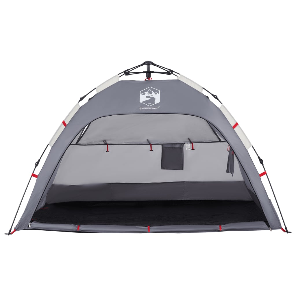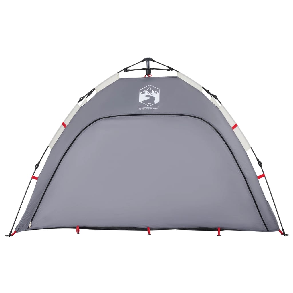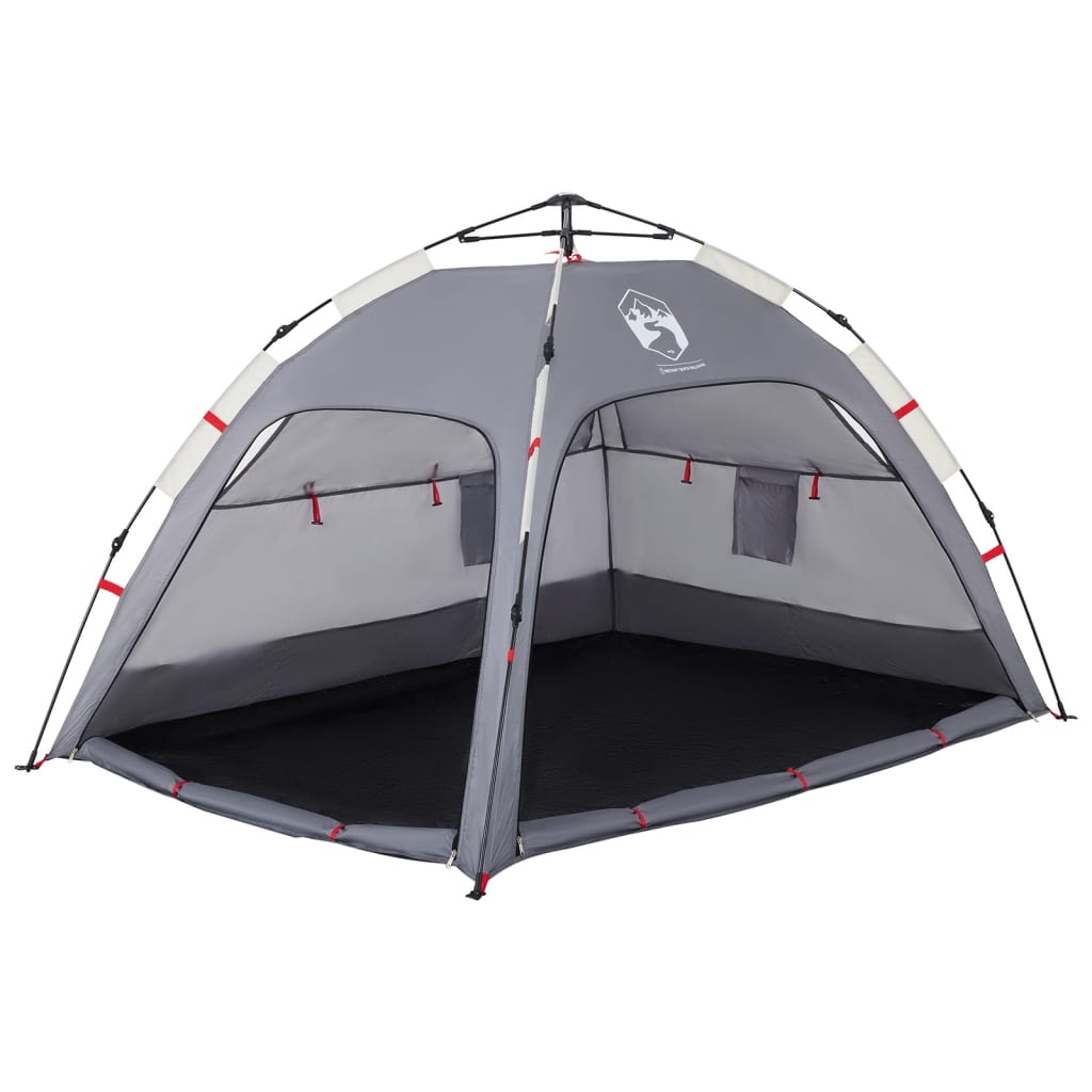 Dieses Strandzelt bietet dir und deinen Freunden einen gemütlichen Unterschlupf im heißen Sommer. Das Zelt dient auch als Schattenspender über dem Sandkasten und dem Planschbecken. Wasserdicht: Aus Polyester mit PU-Beschichtung gefertigt, ist dieses Zelt wasser- und winddicht.Quick-Release-System: Dank des Quick-Release-Systems lässt sich das Zelt mühelos aufbauen! Lege das Zelt auf den Boden, ziehe das vormontierte Gestänge heraus, bis es einrastet, und schon ist das Zelt einsatzbereit!Doppelfenster: Das Netzfenster sorgt für eine gute Belüftung und hält Insekten fern, während das wasserdichte Fenster Schutz vor Wind und Regen bietet.Einfacher Zugang: Der Eingang mit Reißverschluss ermöglicht einen einfachen Zugang. Er lässt sich einfach aufrollen und mit Knebelknöpfen befestigen. So kannst du für eine gute Luftzirkulation und viel natürliches Licht im Zelt sorgen.Stabil und sicher: Befestige dein Zelt mit den mitgelieferten Heringen und Abspannseilen fest am Boden, um seine Stabilität und Sicherheit zu gewährleisten. Achtung:Halte alle Flammen und Wärmequellen von diesem Zeltstoff fern.
