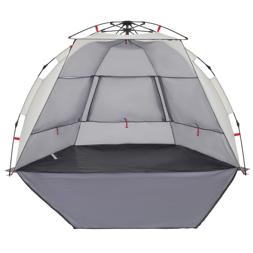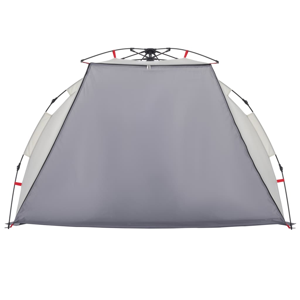 Dieses Strandzelt bietet dir und deinen Freunden einen gemütlichen Unterschlupf im heißen Sommer. Das Zelt dient auch als Schattenspender über dem Sandkasten und dem Planschbecken. Wasserdicht: Aus Polyester mit PU-Beschichtung gefertigt, ist dieses Zelt wasser- und winddicht.Quick-Release-System: Dank des Quick-Release-Systems lässt sich das Zelt mühelos aufbauen! Lege das Zelt auf den Boden, ziehe das vormontierte Gestänge heraus, bis es einrastet, und schon ist das Zelt einsatzbereit!Privatsphäre: Der vordere Eingang mit Reißverschluss lässt sich komplett schließen, um Privatsphäre beim Schlafen, Umziehen oder Stillen zu schaffen. Im geöffneten Zustand kann er auch als praktische Strandmatte zum Entspannen verwendet werden.Angenehme Kühle durch maximale Luftströmung: Das Zelt verfügt über Seitenteile aus Netzgewebe, die für eine gute Belüftung sorgen und den Innenraum kühl und komfortabel halten.Stabil und sicher: Befestige dein Zelt mit den mitgelieferten Heringen und Abspannseilen fest am Boden, um seine Stabilität und Sicherheit zu gewährleisten. Achtung:Halte alle Flammen und Wärmequellen von diesem Zeltstoff fern.
