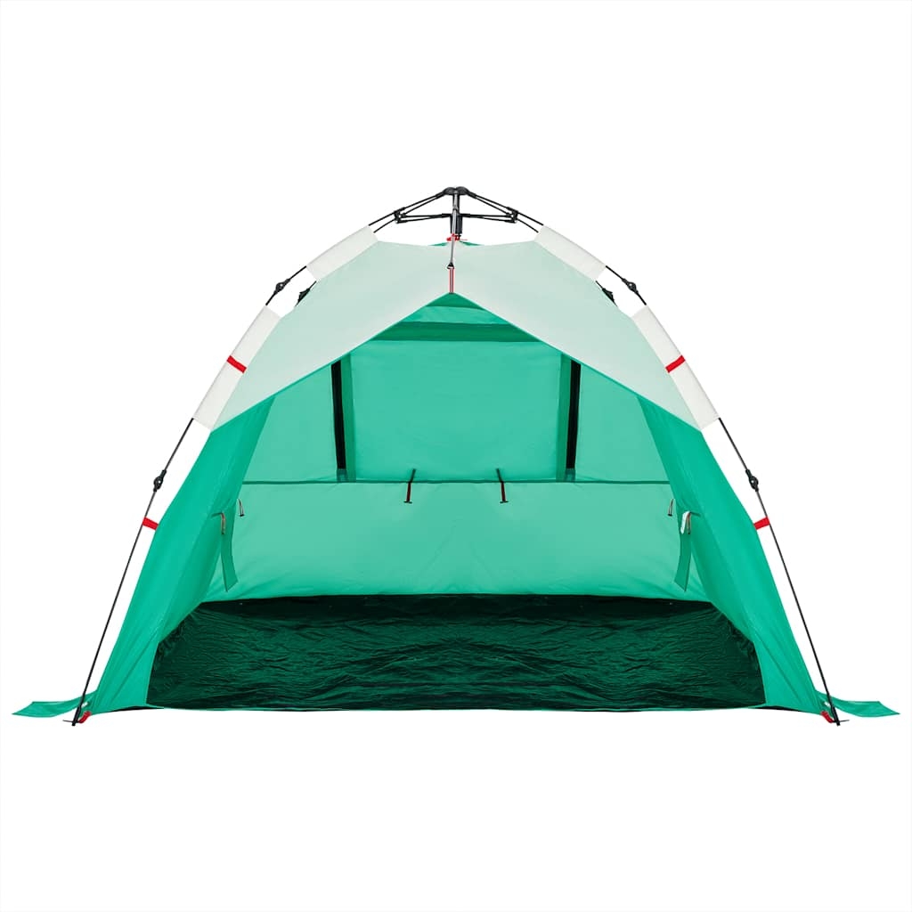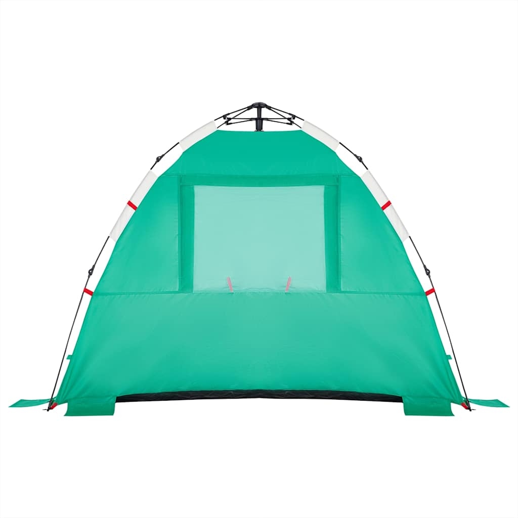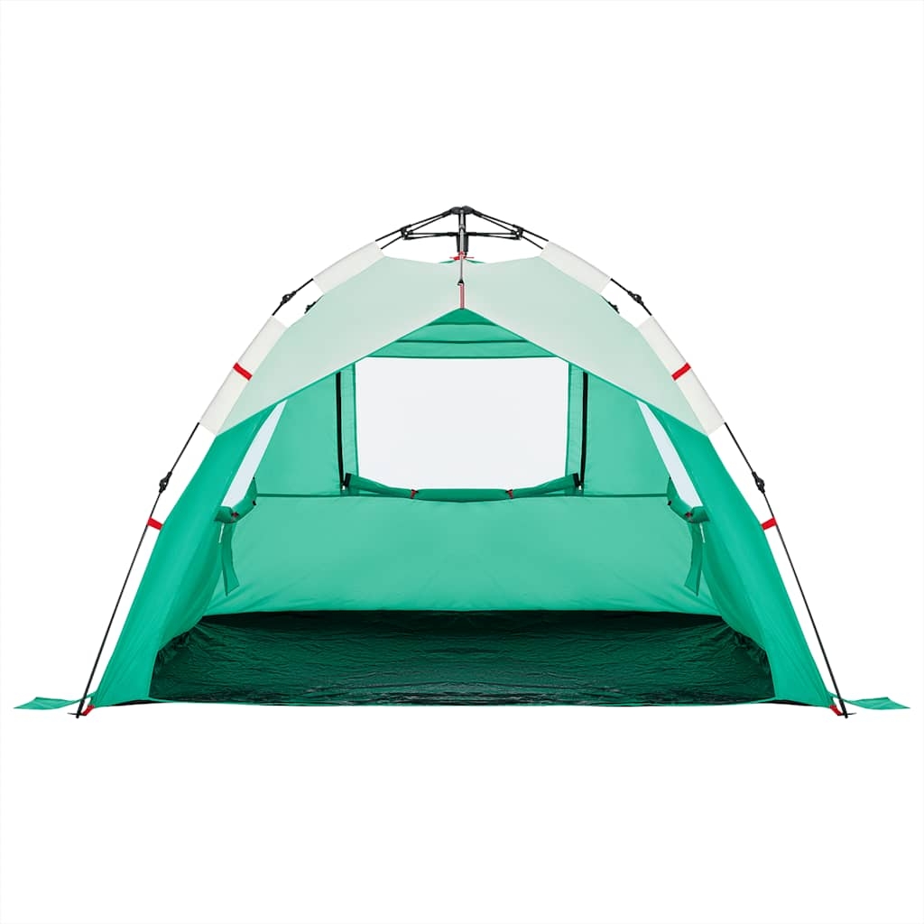 Dieses Strandzelt bietet dir und deinen Freunden einen gemütlichen Unterschlupf im heißen Sommer. Das Zelt dient auch als Schattenspender über dem Sandkasten und dem Planschbecken. Wasserdicht: Aus Polyester mit PU-Beschichtung gefertigt, ist dieses Zelt wasser- und winddicht.Quick-Release-System: Dank des Quick-Release-Systems lässt sich das Zelt mühelos aufbauen! Lege das Zelt auf den Boden, ziehe das vormontierte Gestänge heraus, bis es einrastet, und schon ist das Zelt einsatzbereit!Offener Eingang: Durch das vollständig offene Design kannst du mit deiner Familie die wunderschöne Strandlandschaft genießen oder die Kinder an einem herrlichen Sommernachmittag frei unterhalten.Angenehme Kühle durch maximale Luftströmung: Das Zelt verfügt über Seitenteile aus Netzgewebe, die für eine gute Belüftung sorgen und den Innenraum kühl und komfortabel halten.Stabil und sicher: Befestige dein Zelt mit den mitgelieferten Heringen und Abspannseilen fest am Boden, um seine Stabilität und Sicherheit zu gewährleisten. Achtung:Halte alle Flammen und Wärmequellen von diesem Zeltstoff fern.