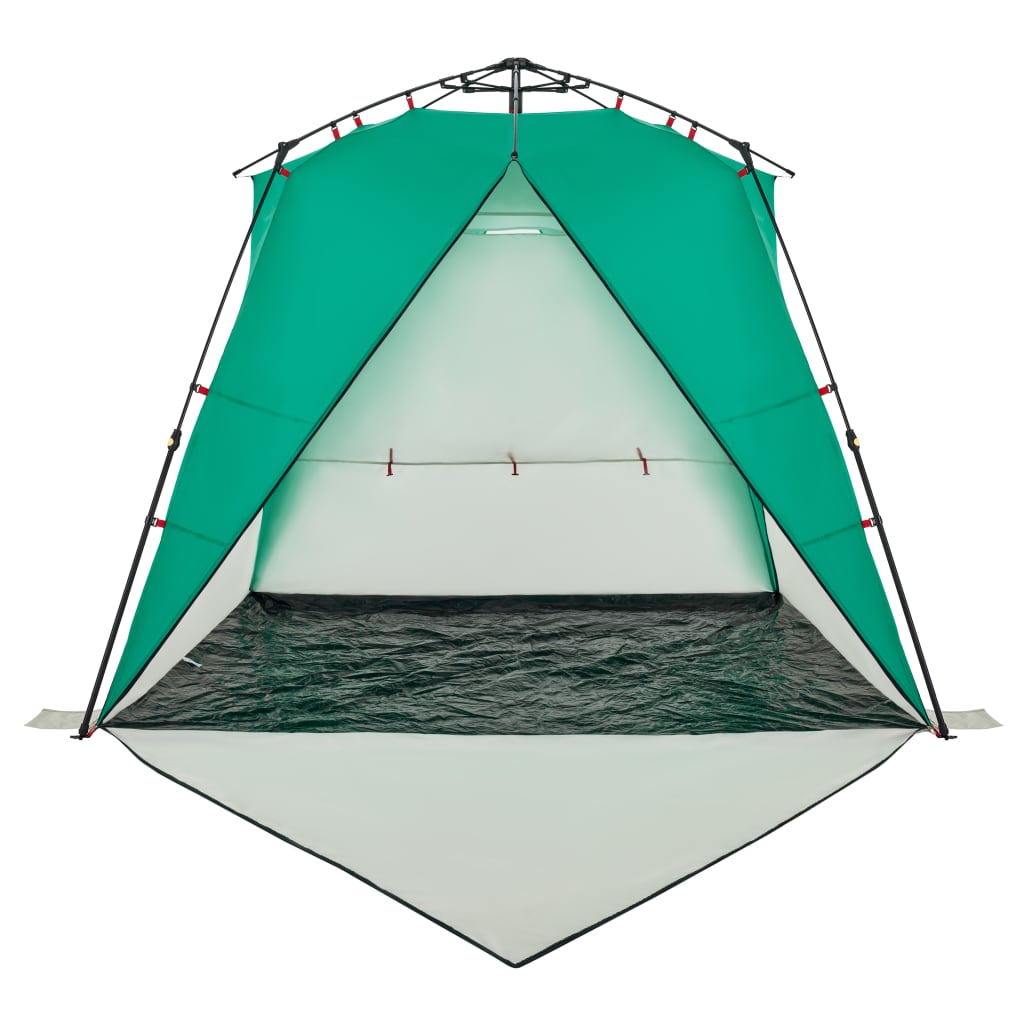 Dieses Strandzelt bietet dir und deinen Freunden einen gemütlichen Unterschlupf im heißen Sommer. Das Zelt dient auch als Schattenspender über dem Sandkasten und dem Planschbecken. Wasserdicht: Aus Polyester mit PU-Beschichtung gefertigt, ist dieses Zelt wasser- und winddicht.Quick-Release-System: Dank des Quick-Release-Systems lässt sich das Zelt mühelos aufbauen! Lege das Zelt auf den Boden, ziehe das vormontierte Gestänge heraus, bis es einrastet, und schon ist das Zelt einsatzbereit!Privatsphäre: Der vordere Eingang mit Reißverschluss lässt sich komplett schließen, um Privatsphäre beim Schlafen, Umziehen oder Stillen zu schaffen. Im geöffneten Zustand kann er auch als praktische Strandmatte zum Entspannen verwendet werden.Leicht und tragbar: Dank des faltbaren und leichten Designs lässt sich das Zelt einfach verpacken und in der mitgelieferten Tragetasche mühelos verstauen und transportieren.Stabil und sicher: Befestige dein Zelt mit den mitgelieferten Heringen und Abspannseilen fest am Boden, um seine Stabilität und Sicherheit zu gewährleisten. Achtung:Halte alle Flammen und Wärmequellen von diesem Zeltstoff fern.
