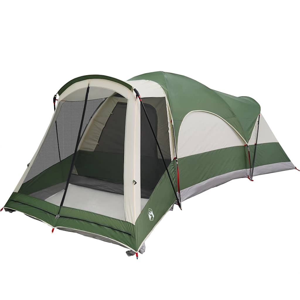 Dieses moderne Familienzelt schützt vor unangenehmen Wetter und bietet einen komfortablen Platz bei Abenteuern. Rundum wasserdichtes Design: Aus Polyester mit PU-Beschichtung gefertigt, ist dieses Campingzelt wasser- und winddicht. Die versiegelten Nähte verhindern effektiv das Eindringen von Regenwasser, während die strapazierfähige Bodenplane für ein trockenes und komfortables Interieur sorgt.Einfacher Auf- und Abbau: Die hochflexiblen und leichten Glasfaserstangen und das praktische Steckverbindungssystem machen den Auf- und Abbau des Zeltes zum Kinderspiel.Gute Belüftung und Insektenschutz: Die Netzwände bieten nicht nur eine hervorragende Belüftung, sondern halten auch Insekten effektiv fern, um den Benutzern ein komfortables und insektenfreies Erlebnis zu bieten.Vorzelt für zusätzlichen Platz: Dieses Campingzelt verfügt über einen praktischen Vorraum. Hier kannst du Gepäck oder Ausrüstung aufbewahren, Speisen zubereiten oder dich sogar im Schatten entspannen.Leicht und tragbar: Dank des faltbaren und leichten Designs lässt sich das Zelt einfach verpacken und in der mitgelieferten Tragetasche mühelos verstauen und transportieren. Achtung:Halte alle Flammen und Wärmequellen von diesem Zeltstoff fern.
