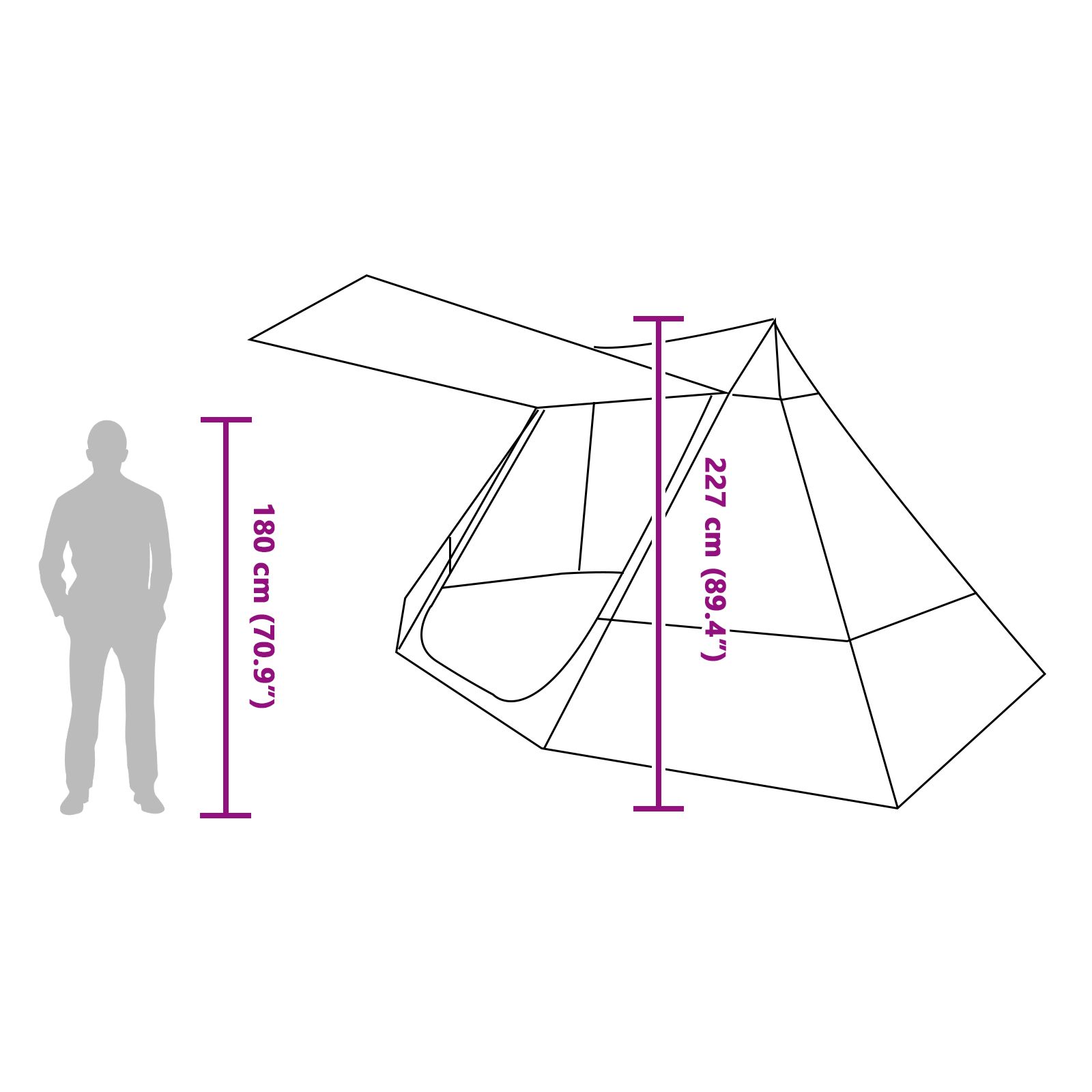 - Lieferumfang: 1 x Zelt, 4 x ST-Stange (173 cm), 2 x ST-Stange (204 cm), 4 x Abspannseil (300 cm), 2 x Abspannseil (350 cm), 14 x Heringe, 1 x Tragetasche